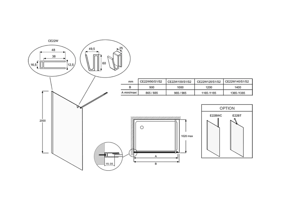 Paroi de douche JACOB DELAFON Contra textile 120cm + kit profilé Noir mat