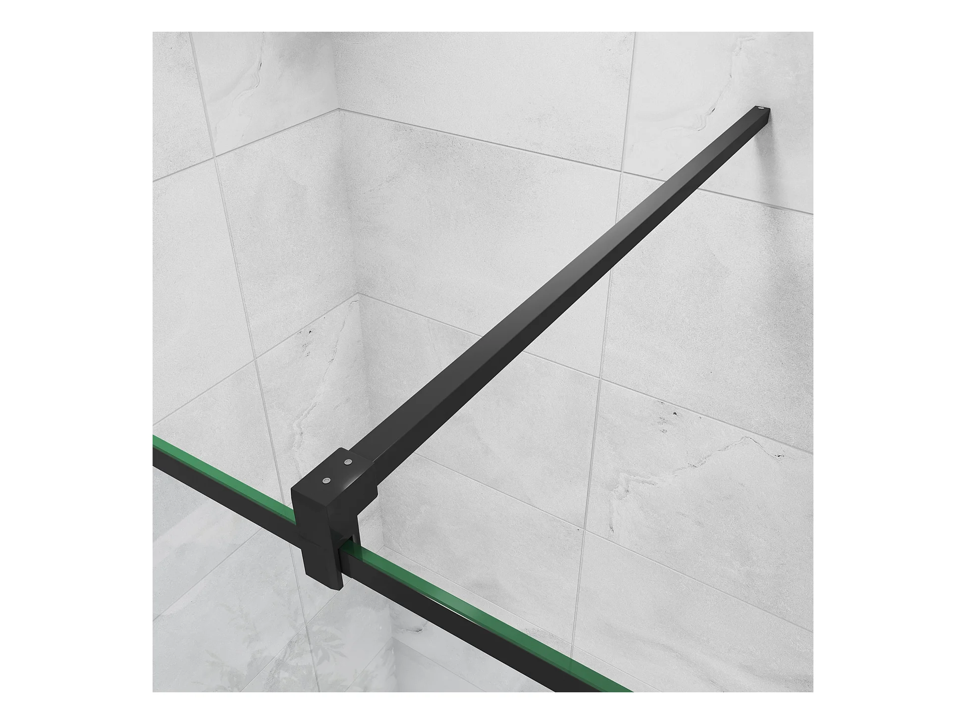 Paroi de douche noire 80x200cm à l'italienne avec barre de fixation noire 90cm en carré, en 8mm verre trempé anticalcaire