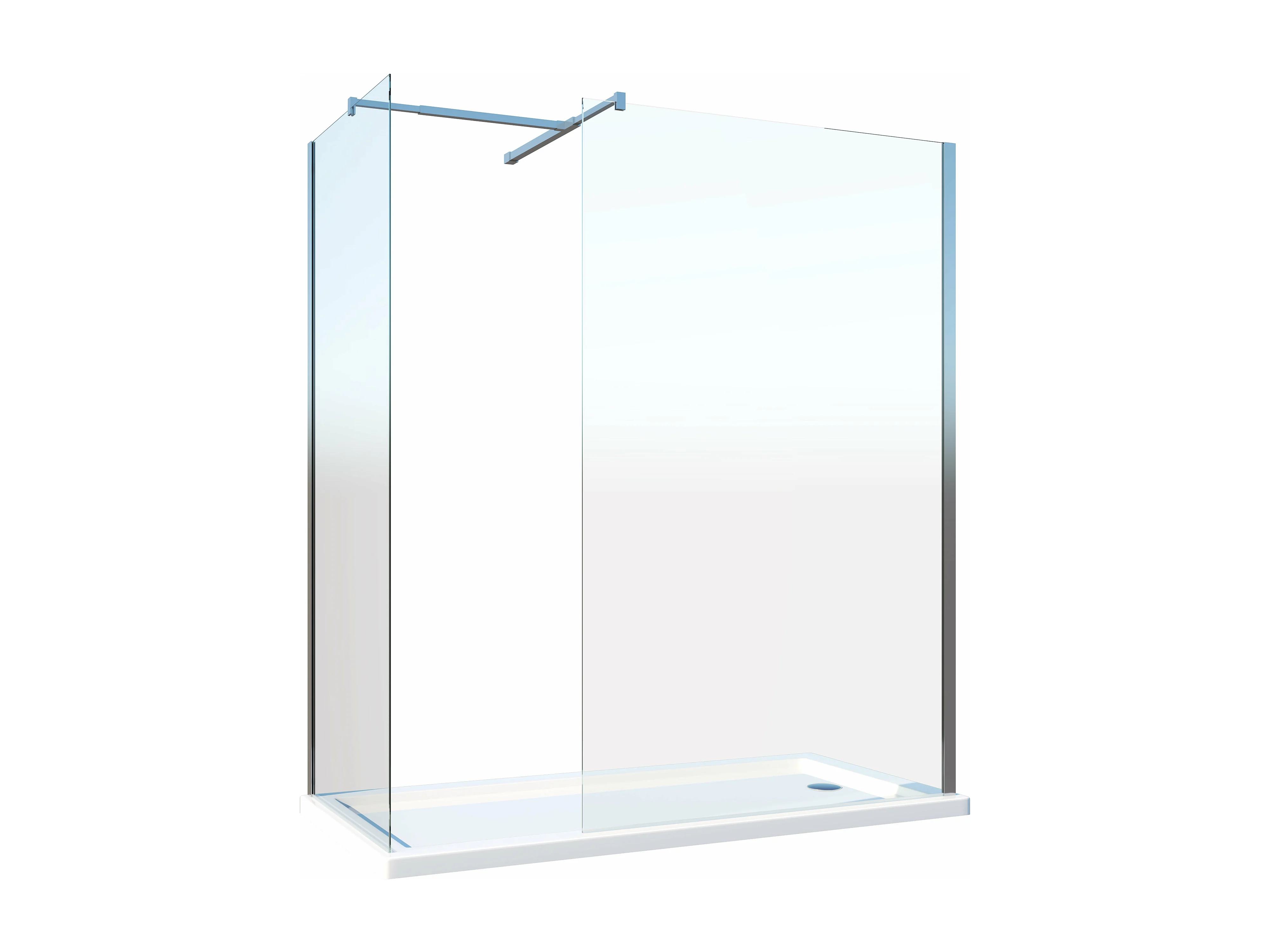 Parois de douche de 8 mm type Walk-in avec barre de soutien à T réversible H.200 – 98-100 + 118-120 cm