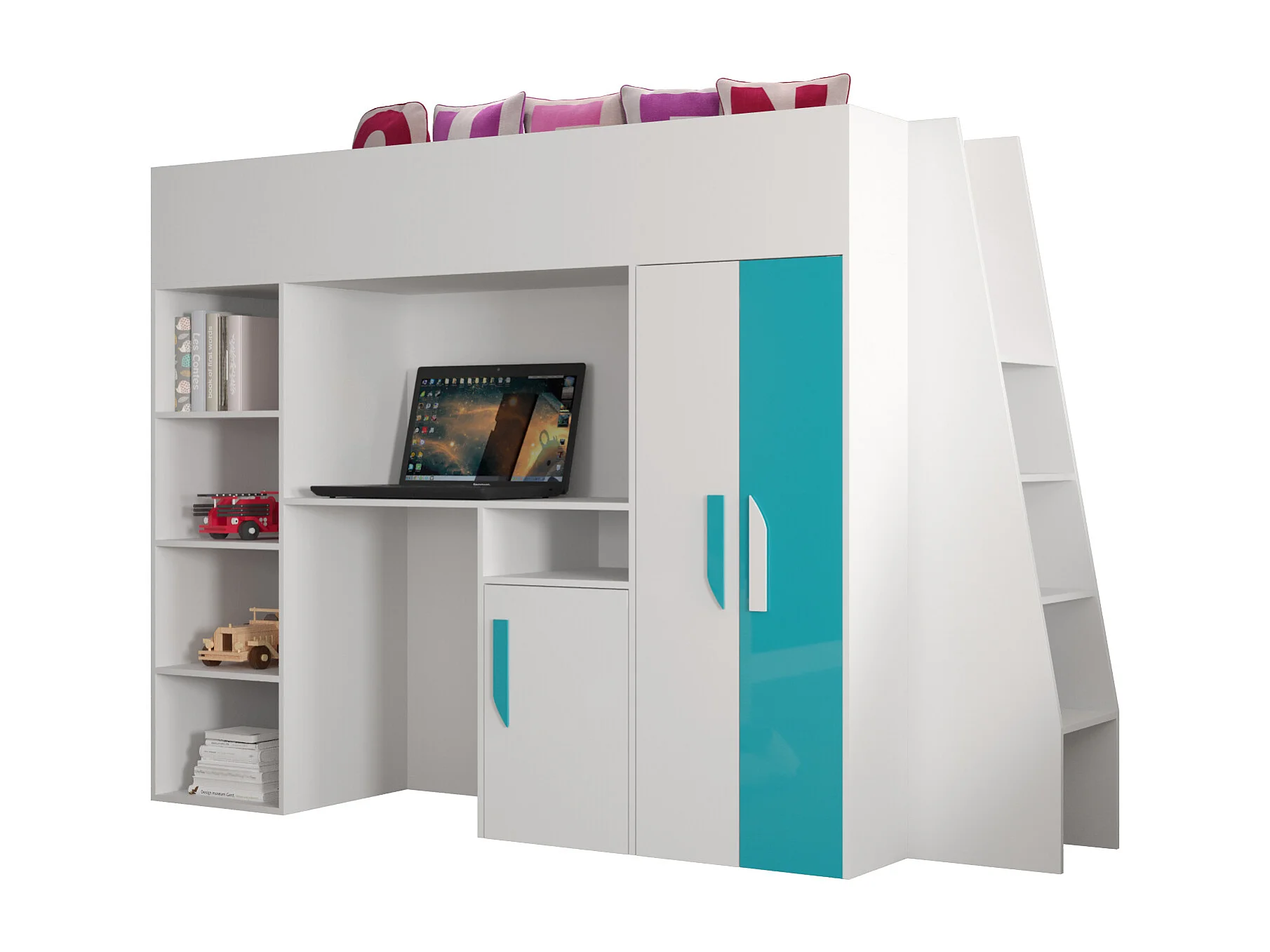 PARTY 15 Lit superposé 230/165/95 (blanc/turquoise)