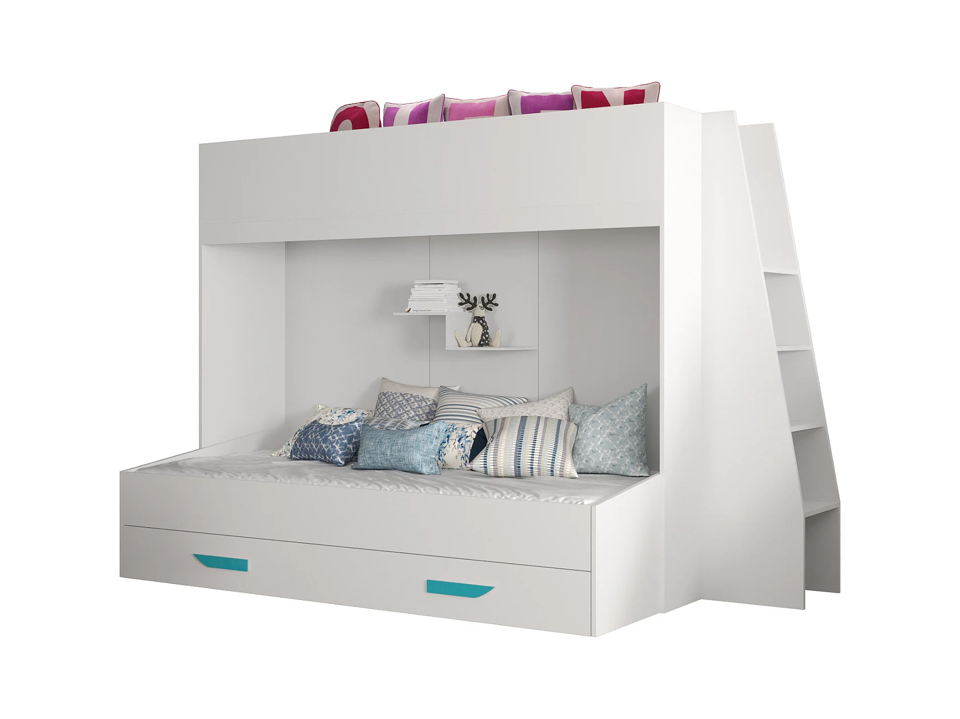 PARTY 17 Lit superposé 247/165/135 (blanc/blanc/turquoise)