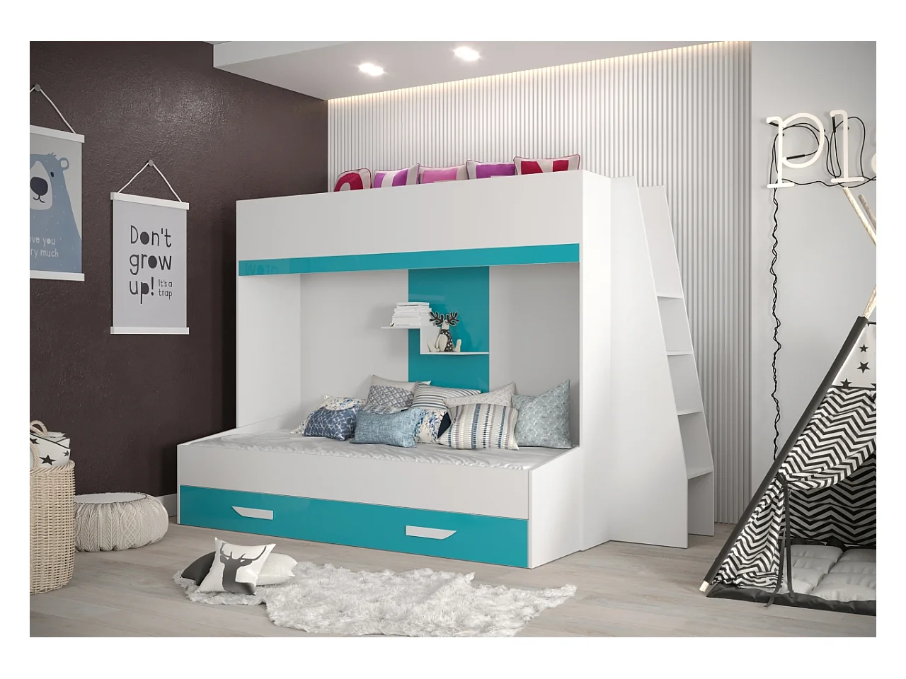 PARTY 17 Lit superposé 247/165/135 (blanc/turquoise)