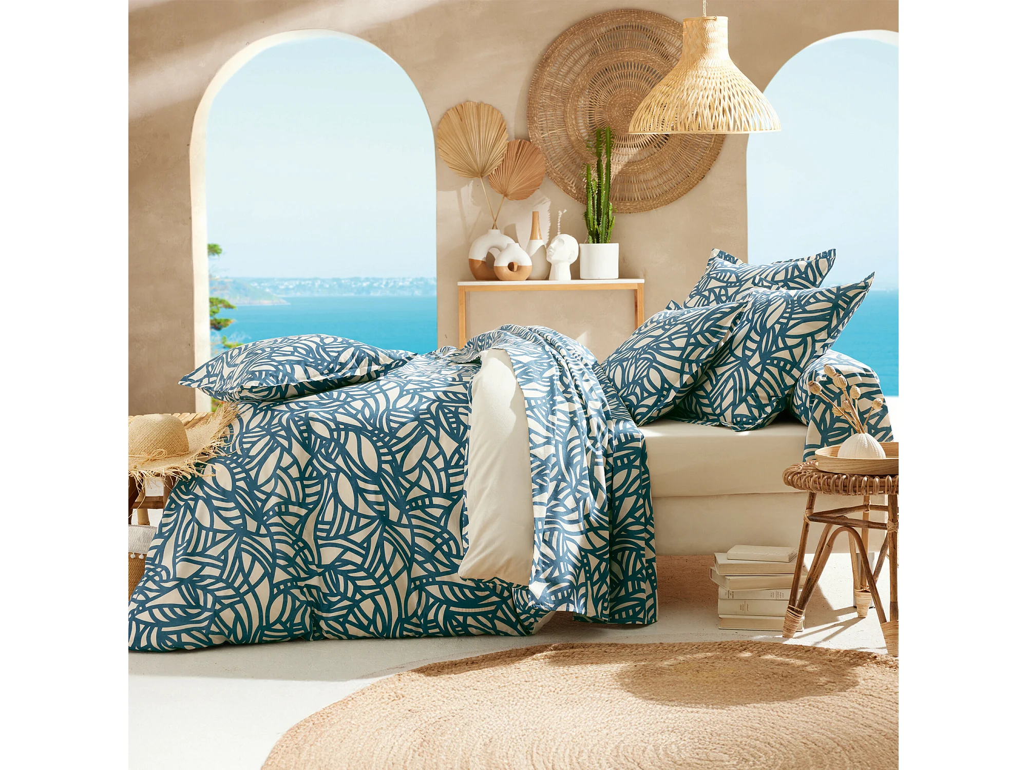 Parure de lit 140x200 cm percale de coton PAST Bleu Canard