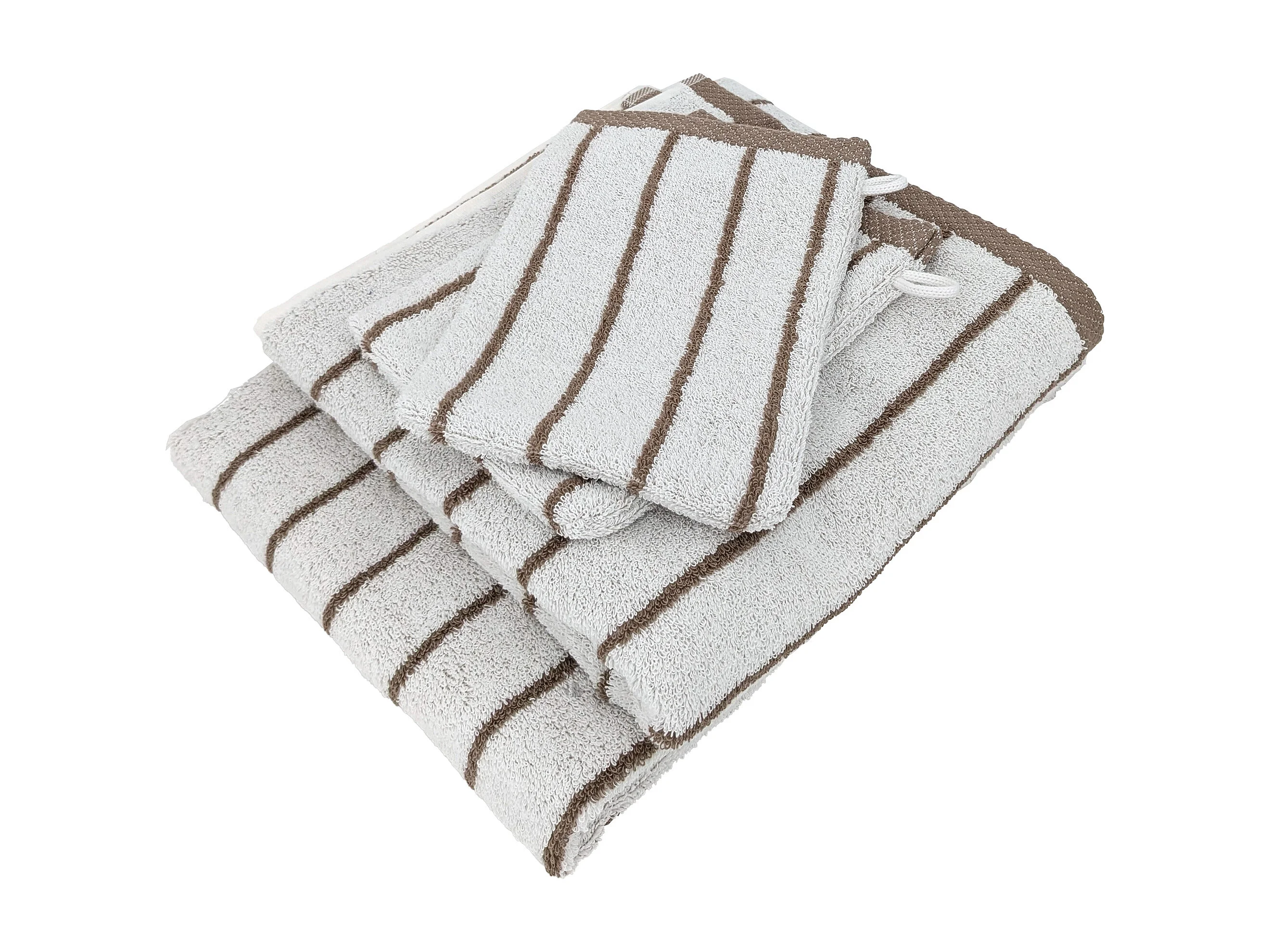 Parure de bain 4 pièces collection PURE LIGHT motif rayures pur coton marron