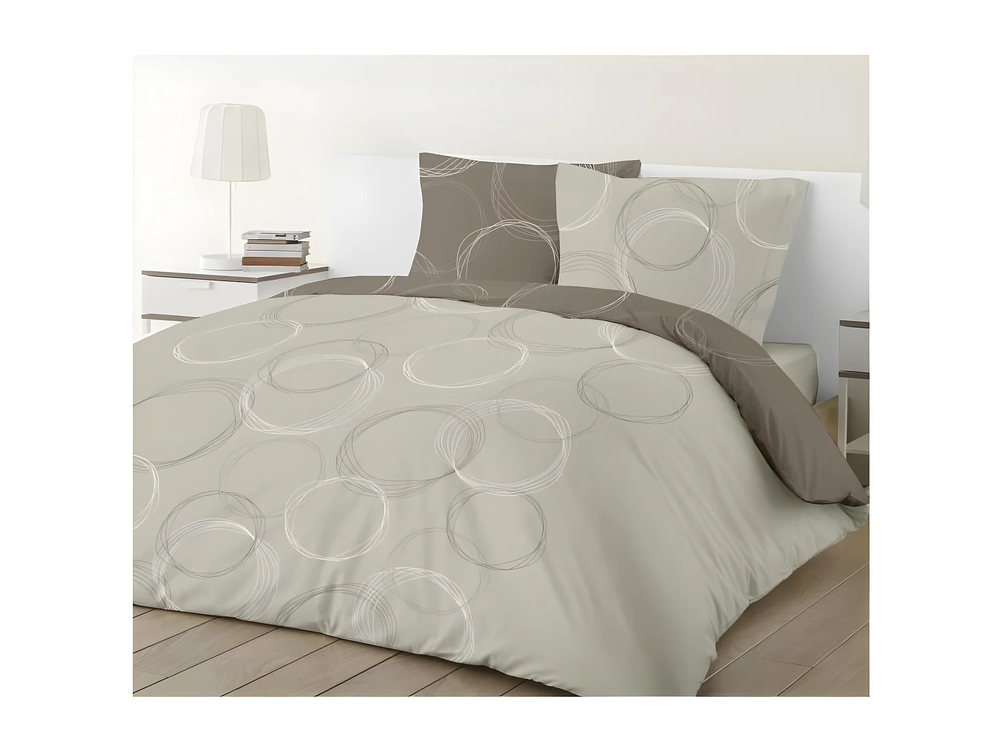Parure de couette Lenny réversible en 100% coton - 240 x 260 cm - Taupe, beige, marron et blanc