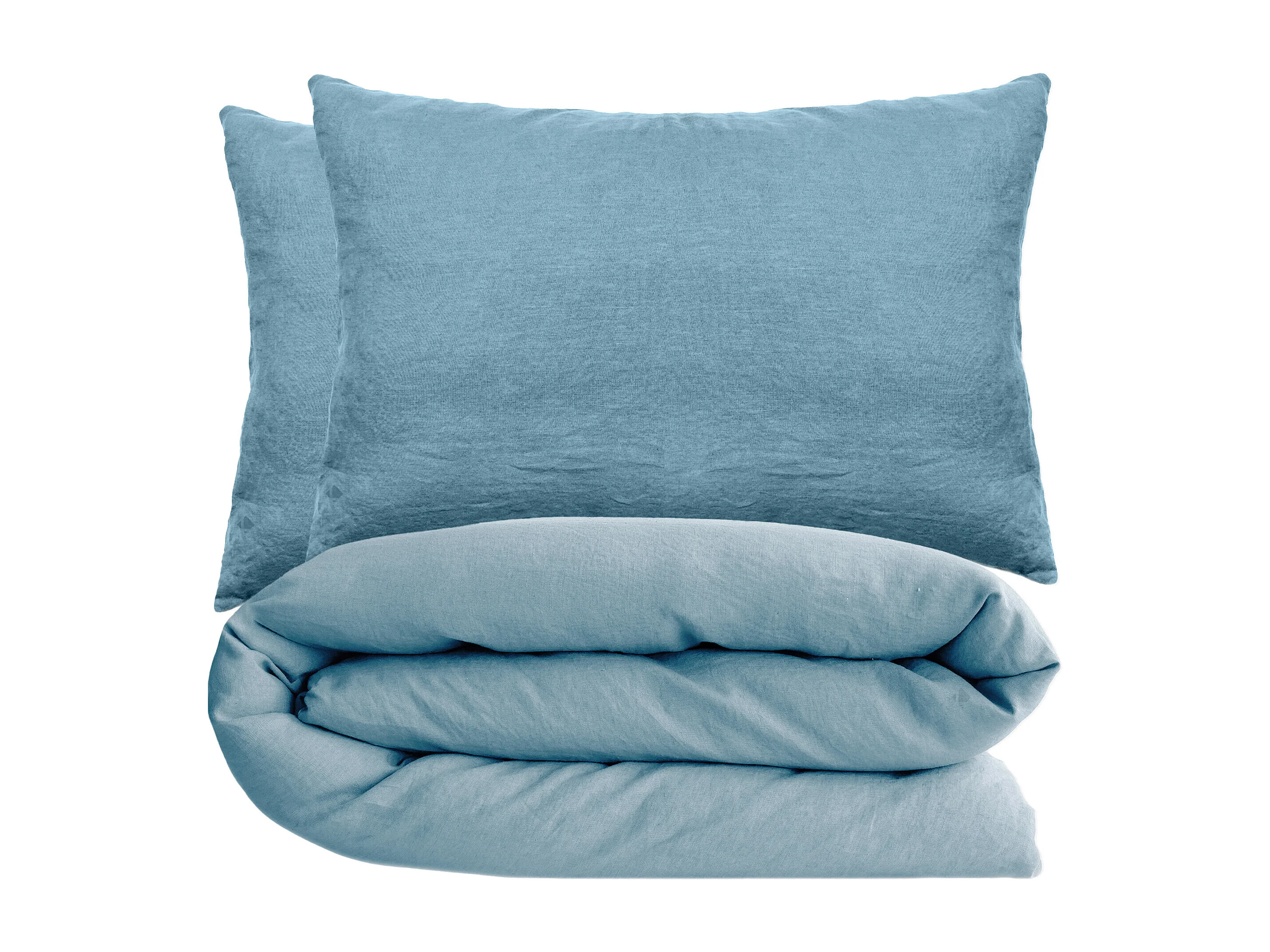 Parure de lit 140x200 cm et 50x70 cm coton lavé PALACE bleu topaze 2 pièces
