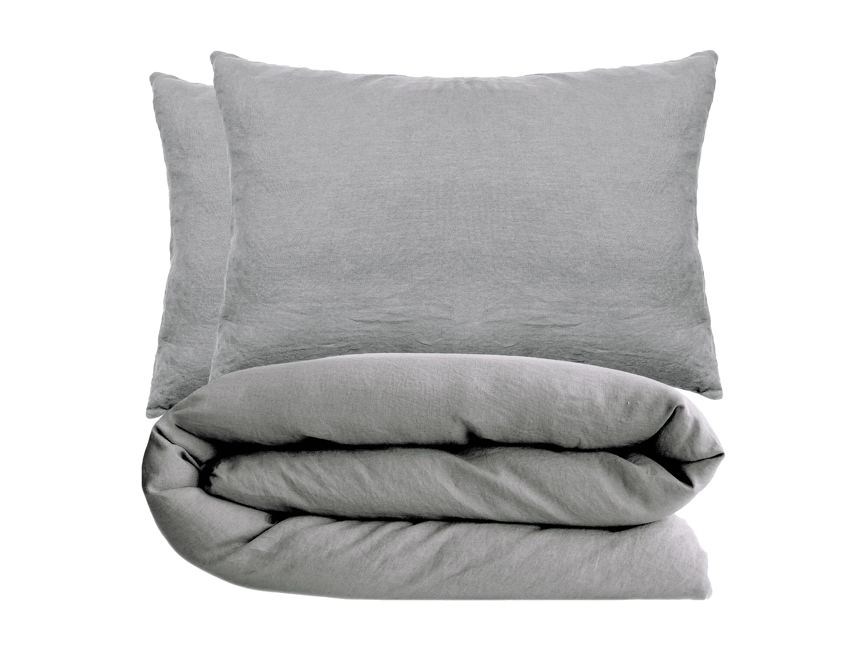 Parure de lit 140x200 cm et 50x70 cm coton lavé PALACE gris acier 2 pièces