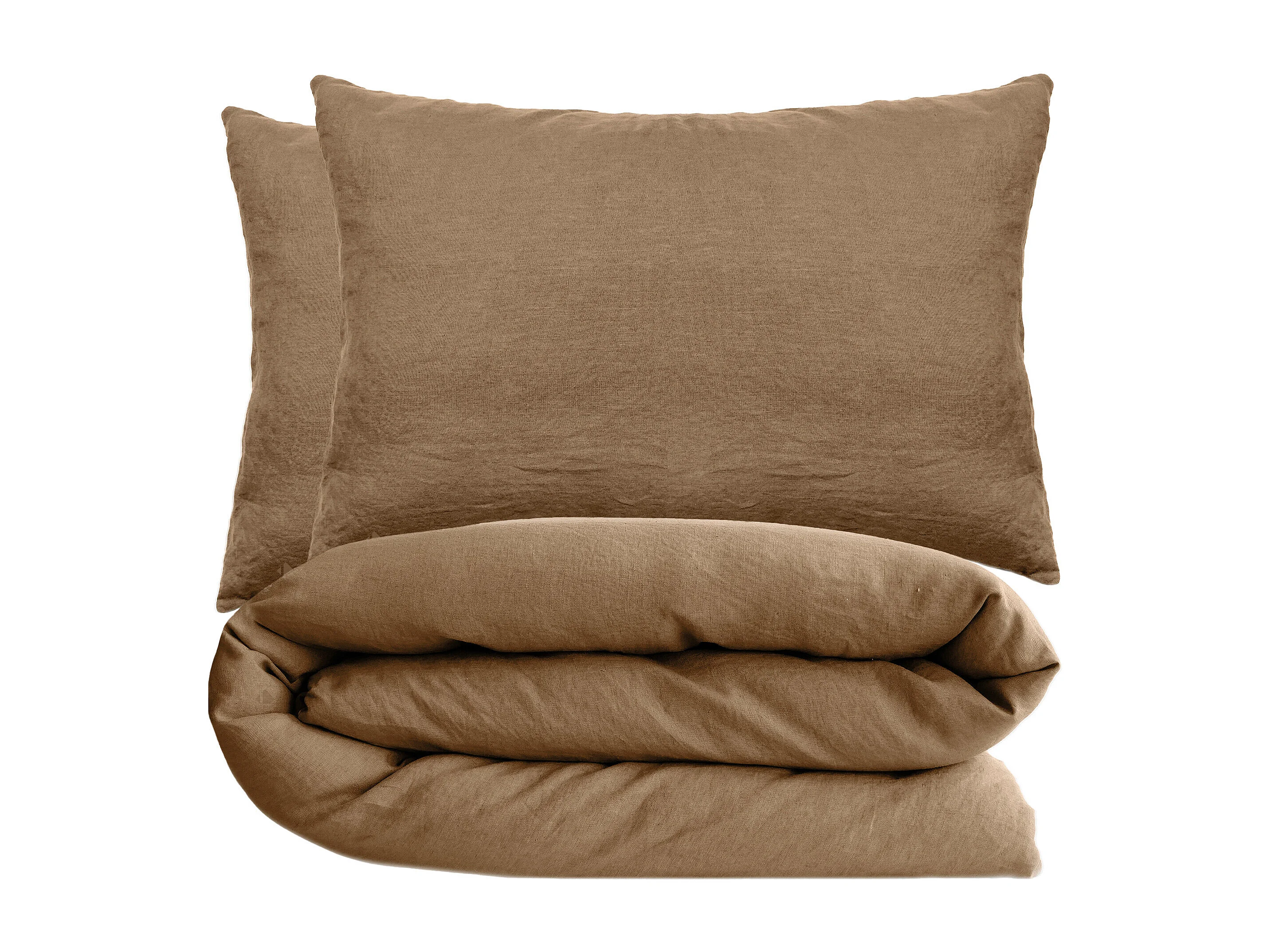 Parure de lit 140x200 cm et 50x70 cm coton lavé PALACE marron cognac 2 pièces