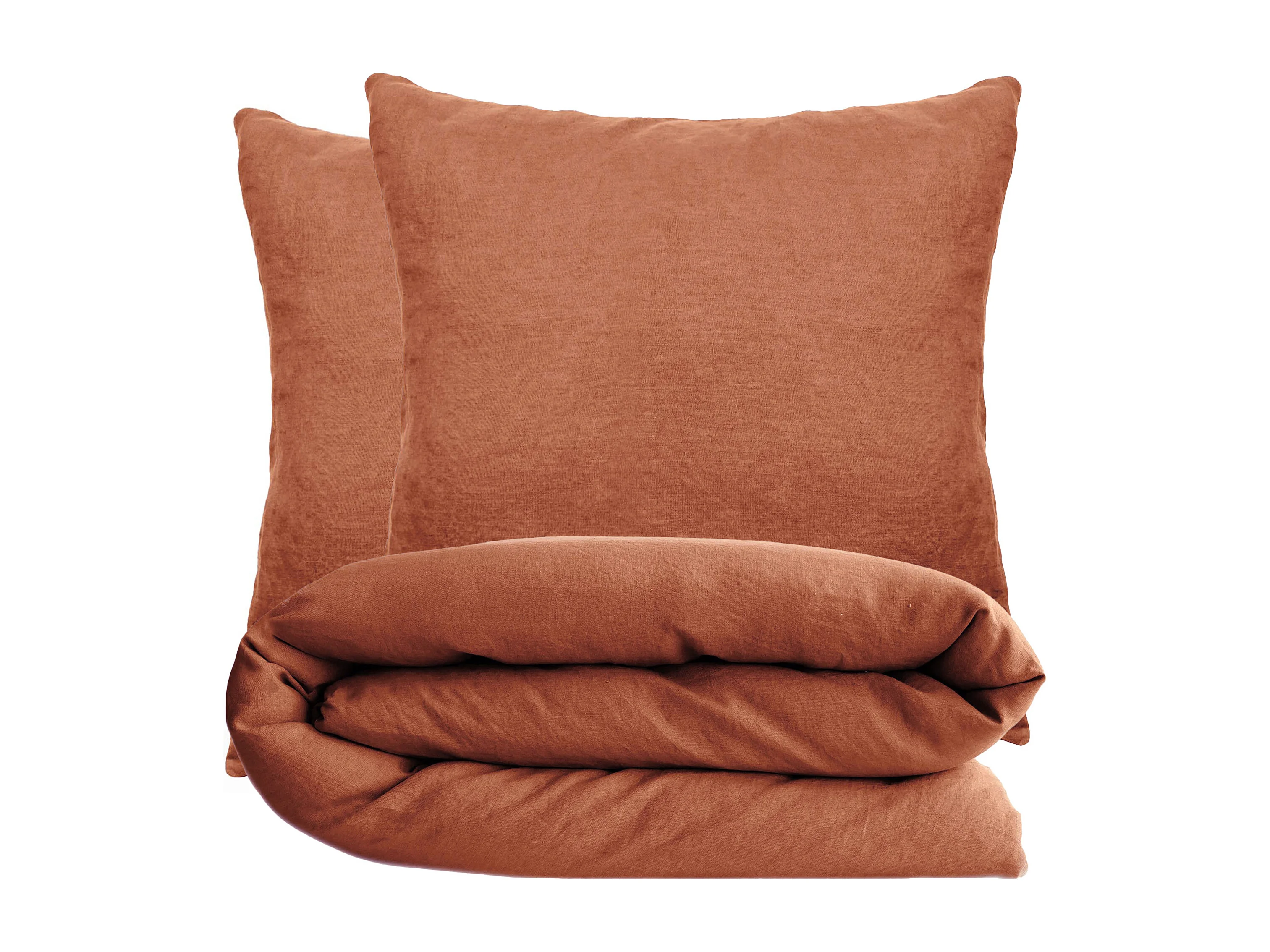 Parure de lit 140x200 cm et 65x65 cm coton lavé PALACE marron terre cuite 2 pièces