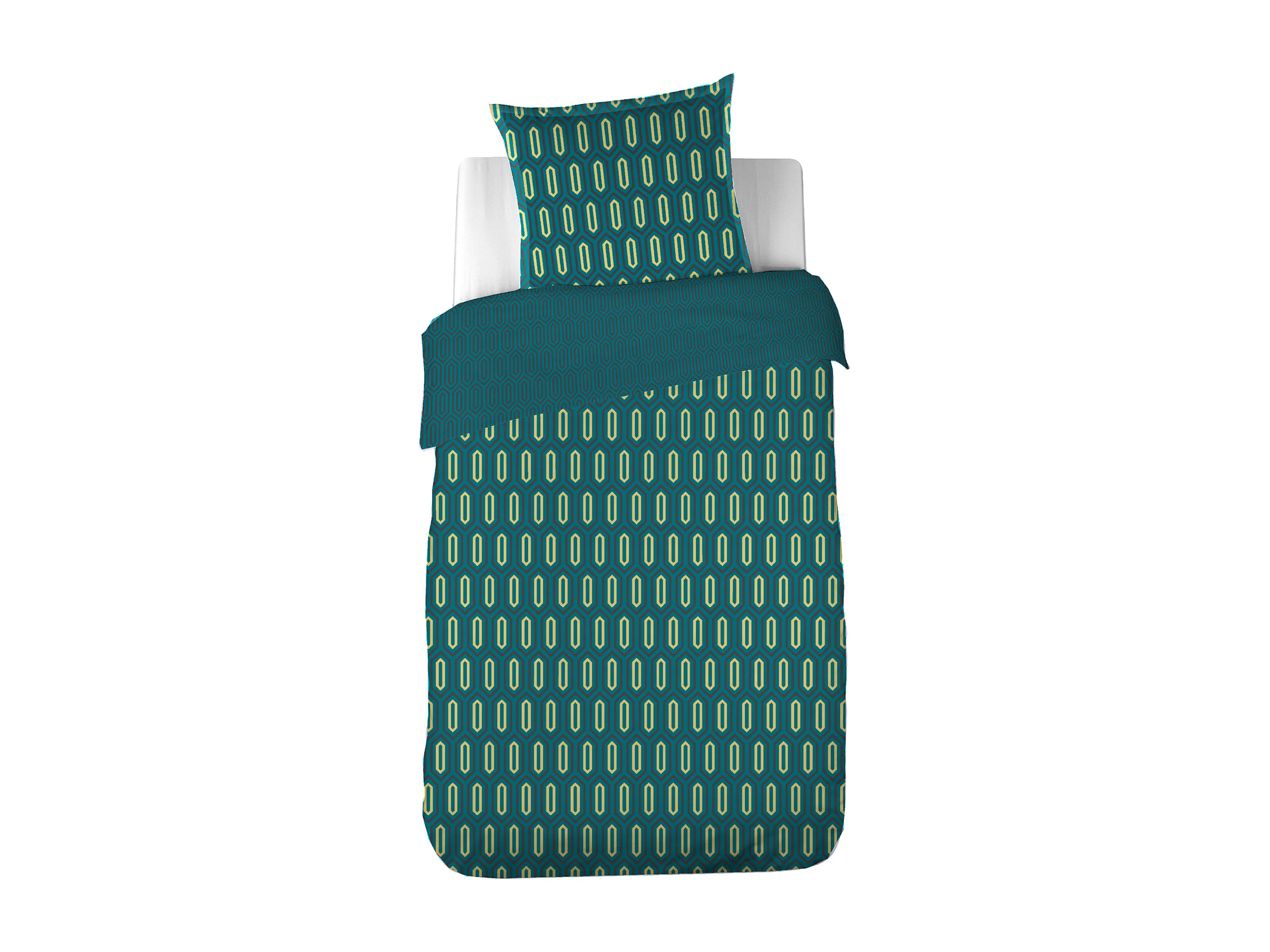 Parure de lit 140x200 cm percale de coton PAST Bleu Canard