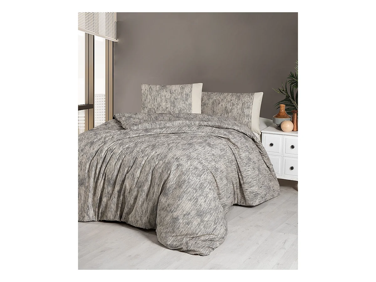 Housse de couette + taie(s) oreiller "Lufian gris" 100% coton imprimé.