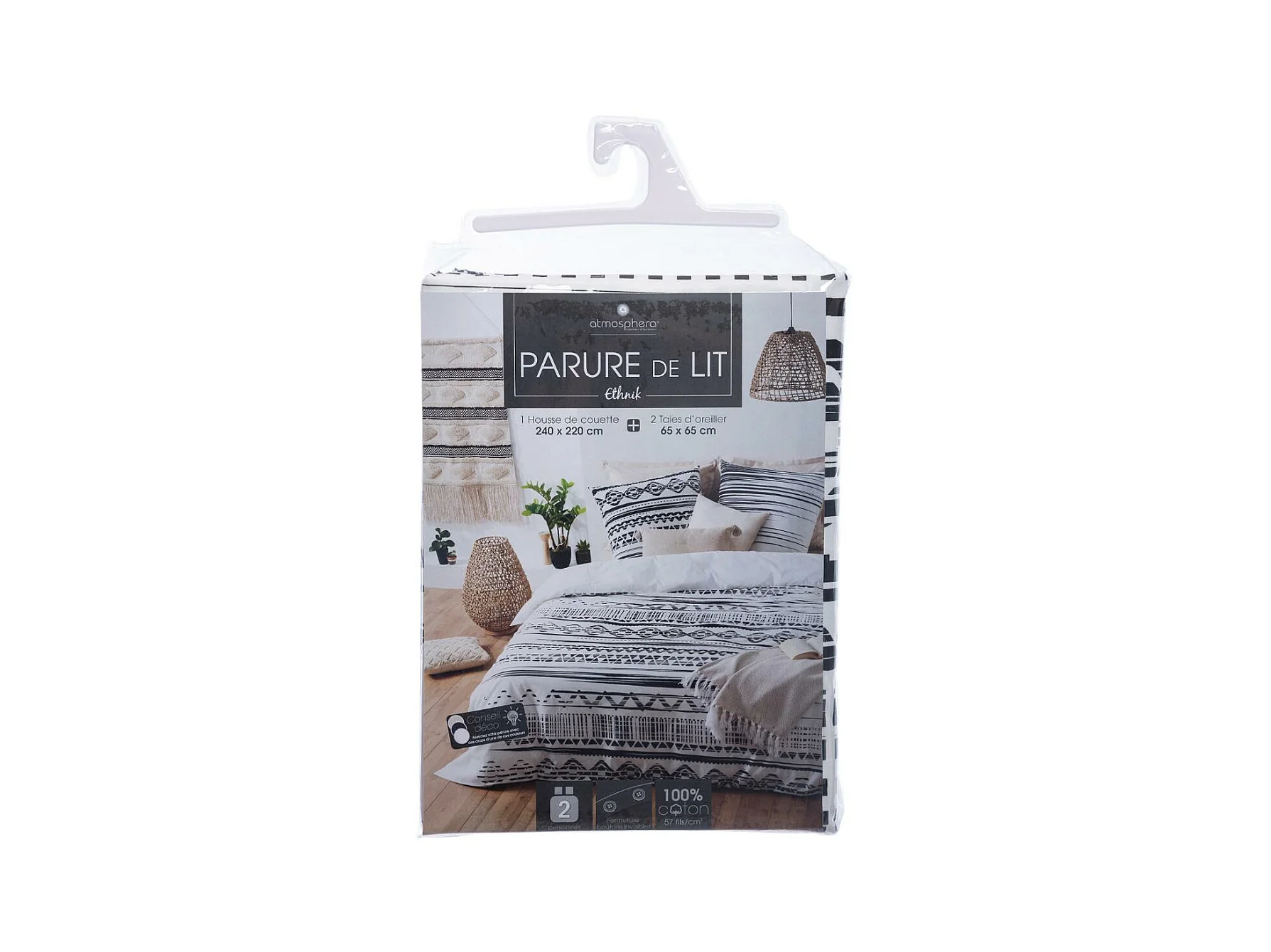 Parure 2 Personnes 240 x 220 cm Housse de couette avec 2 taies en Percale de Coton Imprimé Etniss