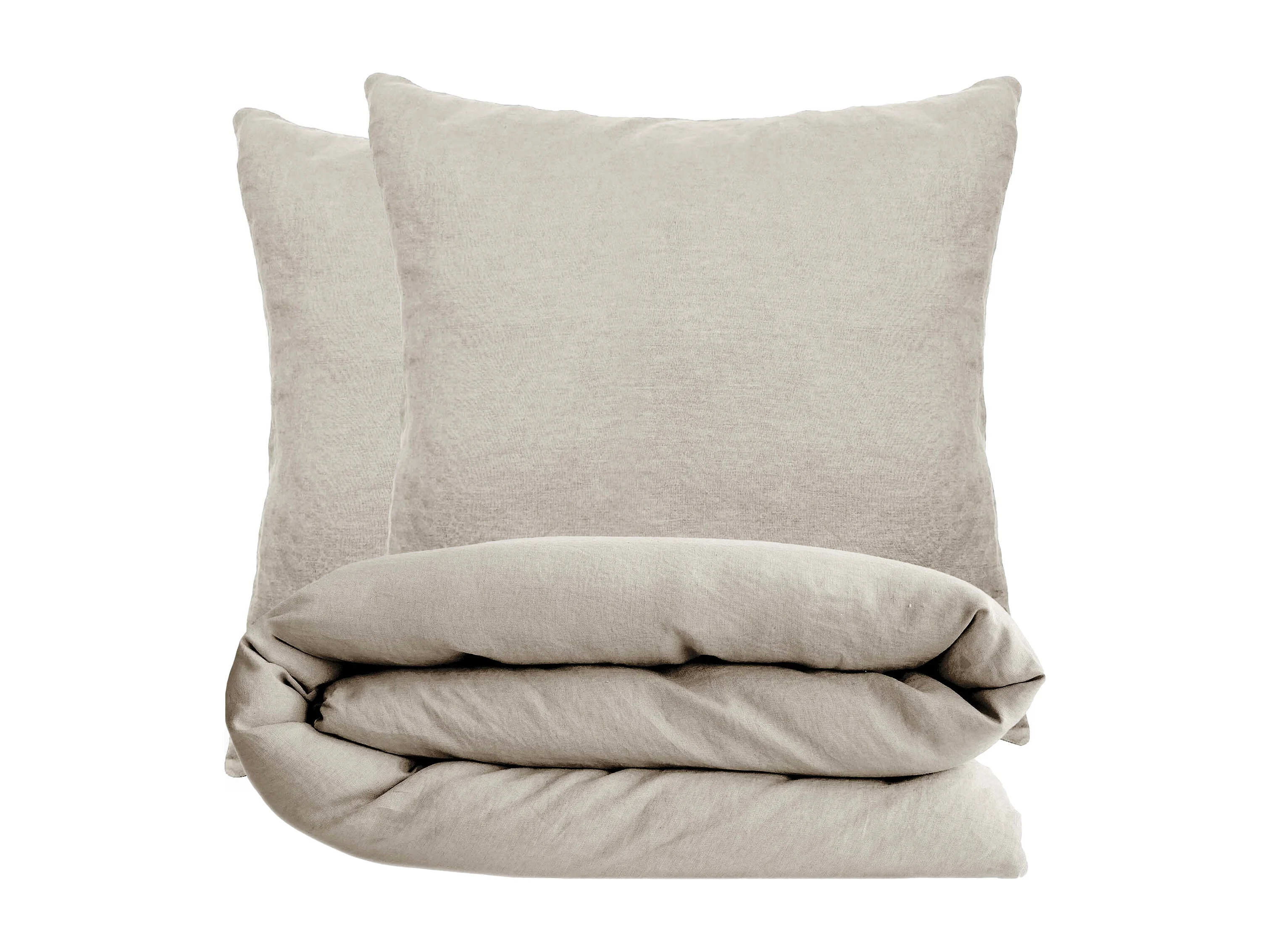 Parure de lit 240x220 cm et 65x65 cm coton lavé PALACE beige lin 3 pièces