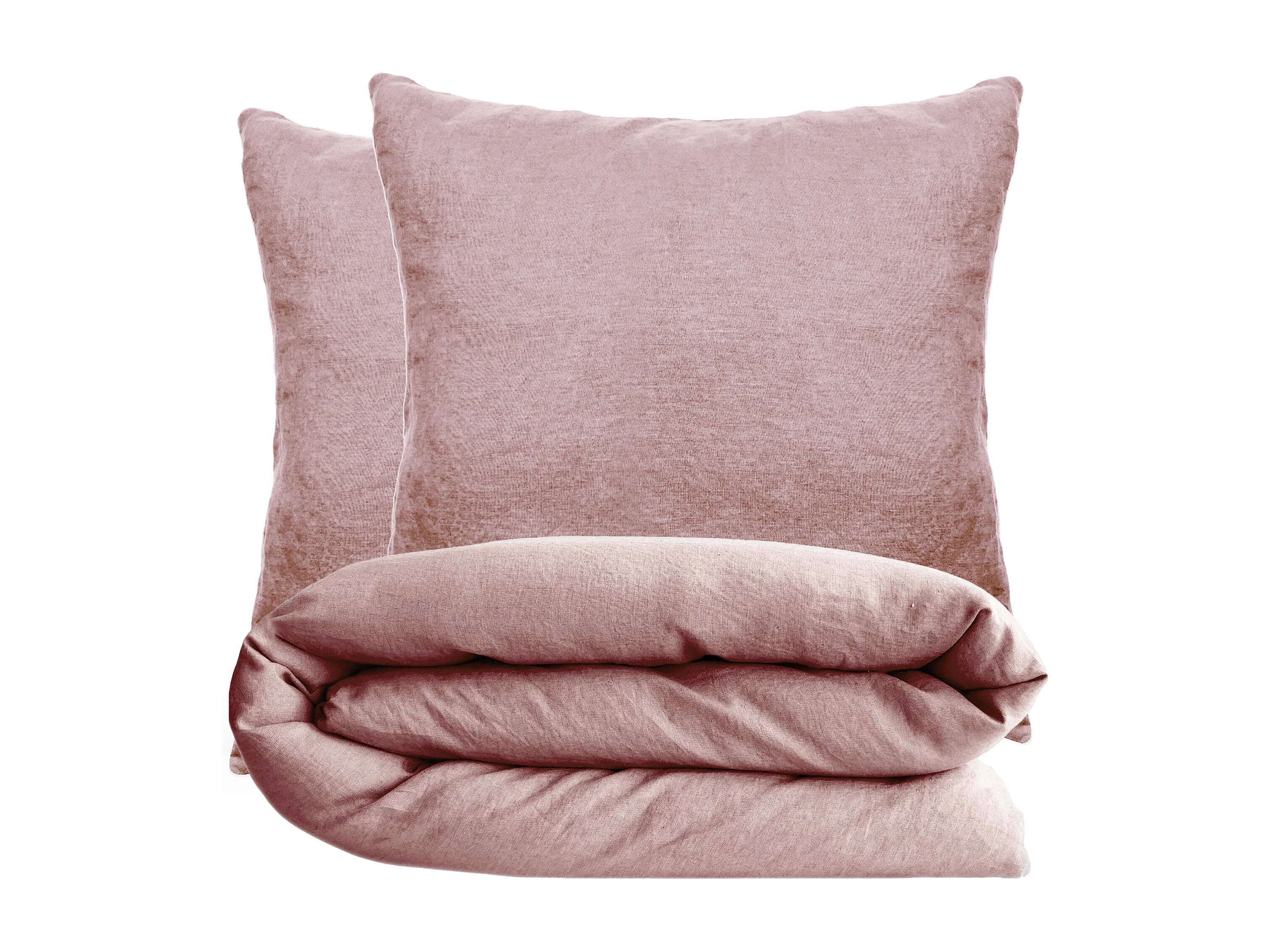 Parure de lit 240x220 cm et 65x65 cm coton lavé PALACE rose 3 pièces