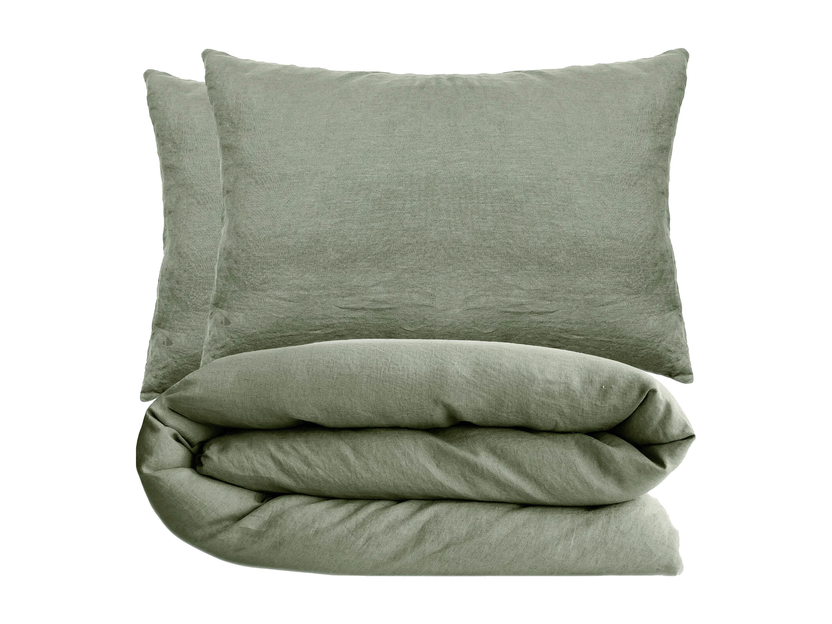 Parure de lit 240x220 cm et 50x70 cm coton lavé PALACE vert sauge 3 pièces