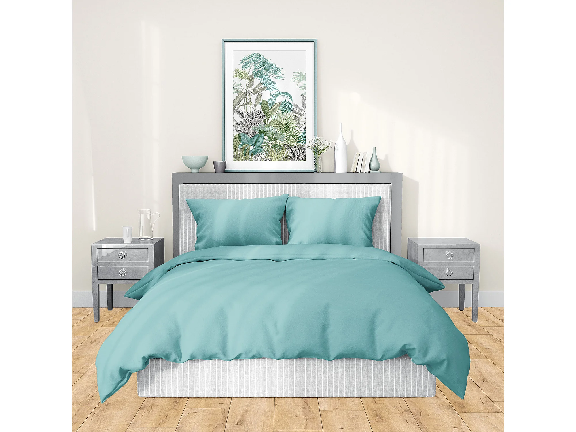 Parure de lit 240x220 cm satin de coton SAPRI vert céladon 3 pièces