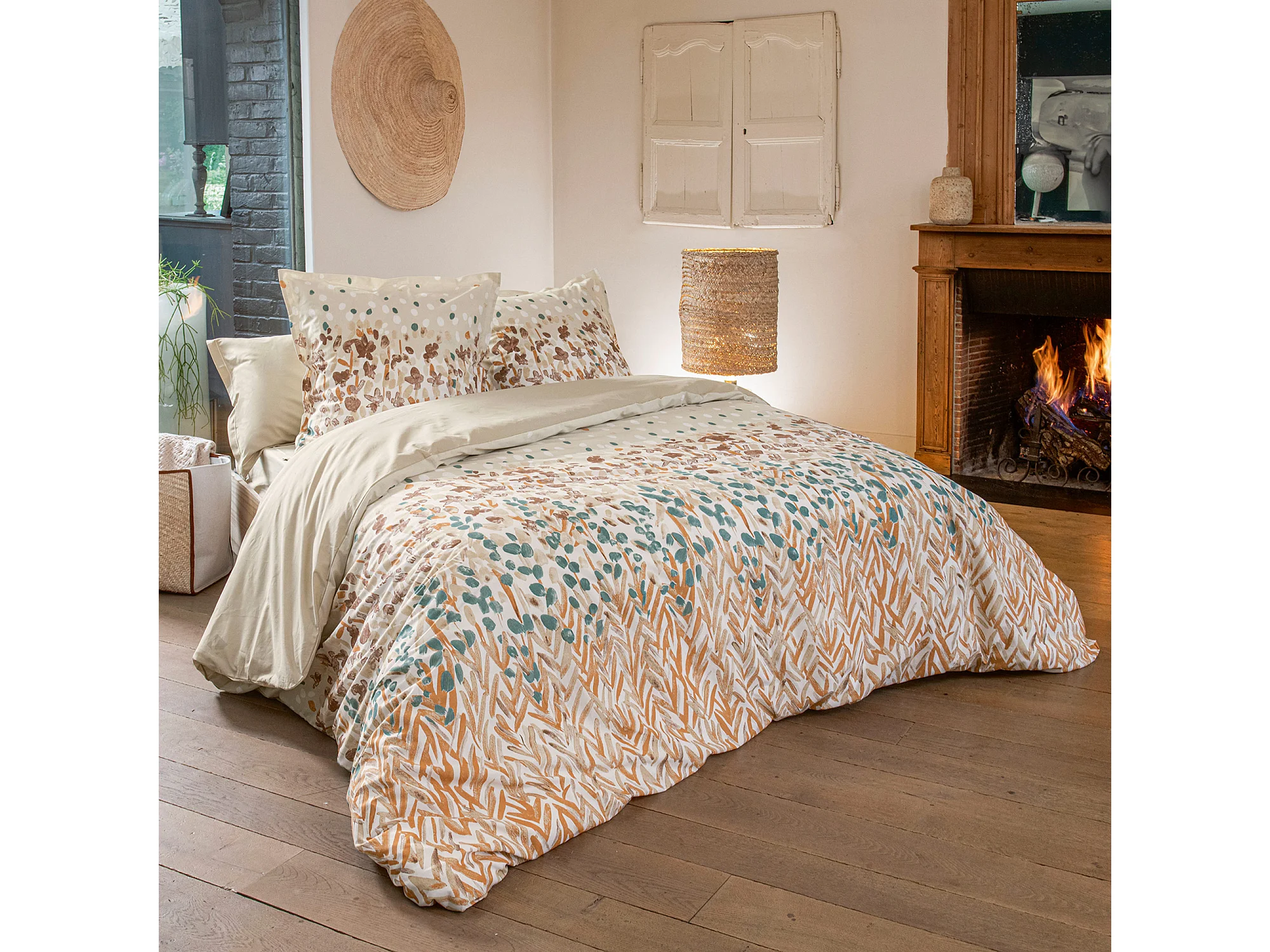 Parure de lit 260x240 cm 65x65 cm coton ÉVASION pêche 3 pièces