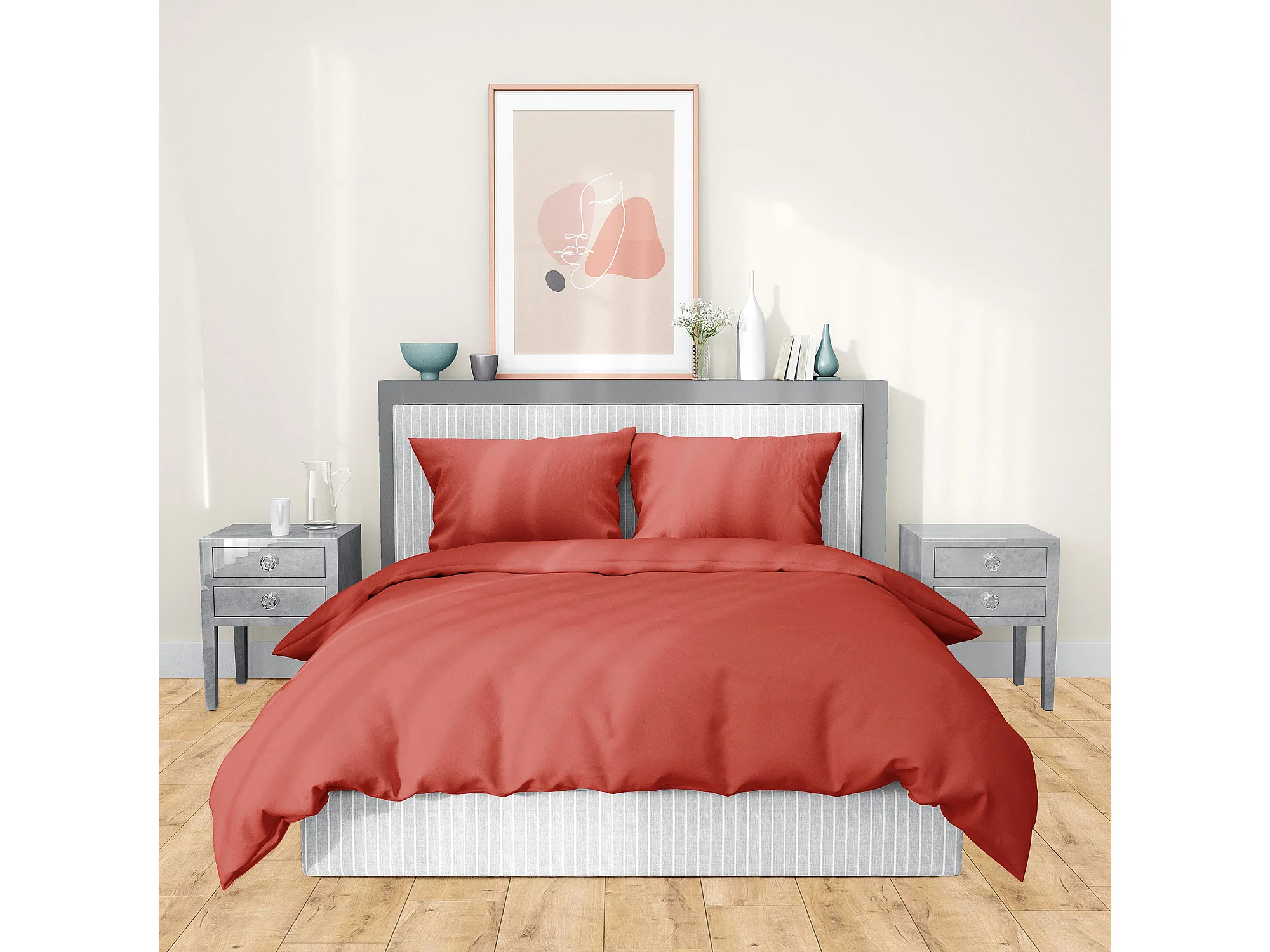 Parure de lit 260x240 cm satin de coton SAPRI rouge sienne 3 pièces