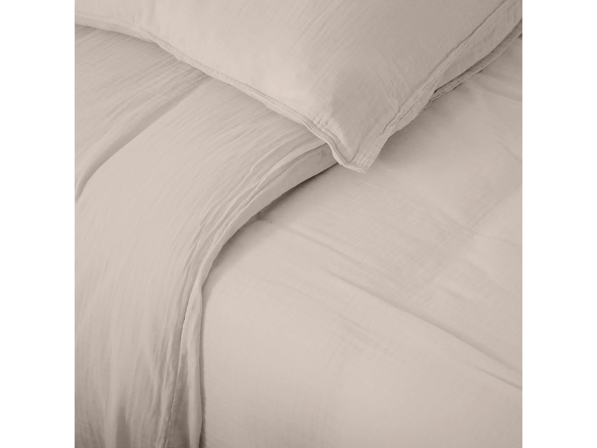 Parure de lit 3 pièces 240x220 cm et 50x70 cm mousseline de coton MILOS beige naturel