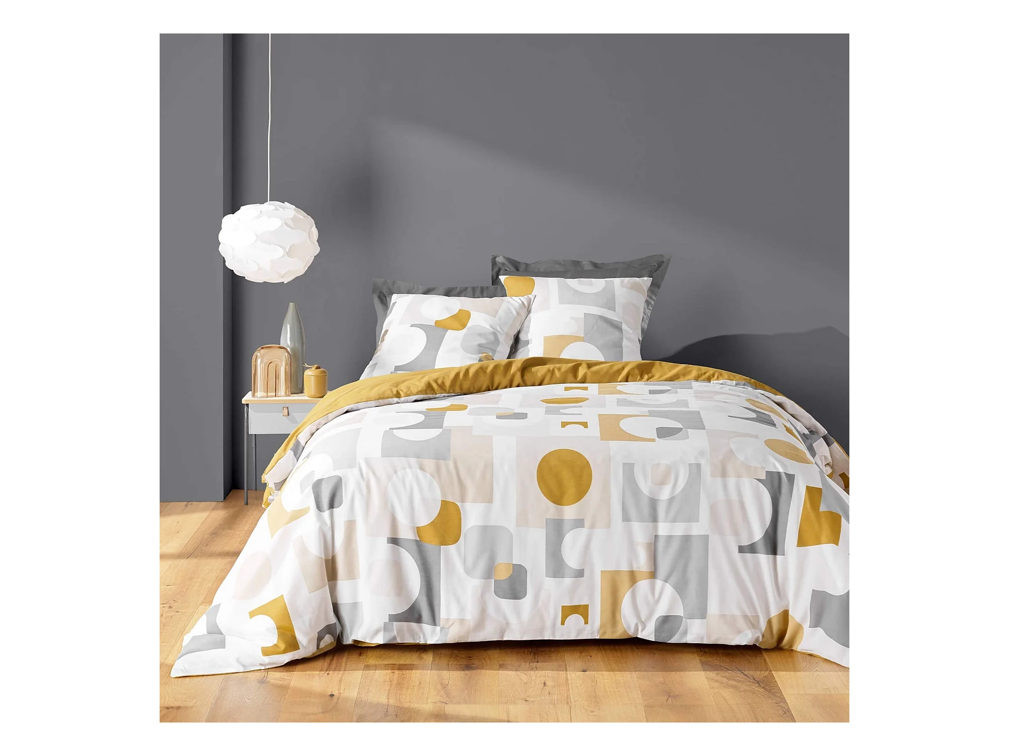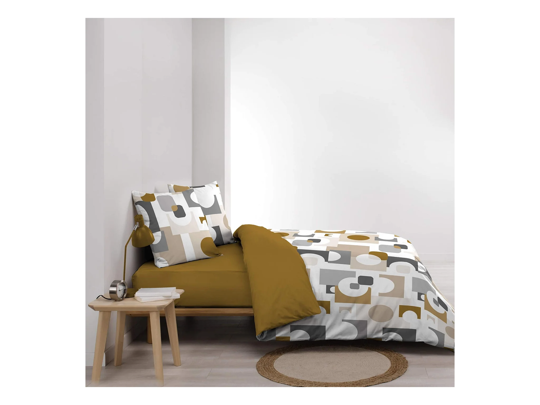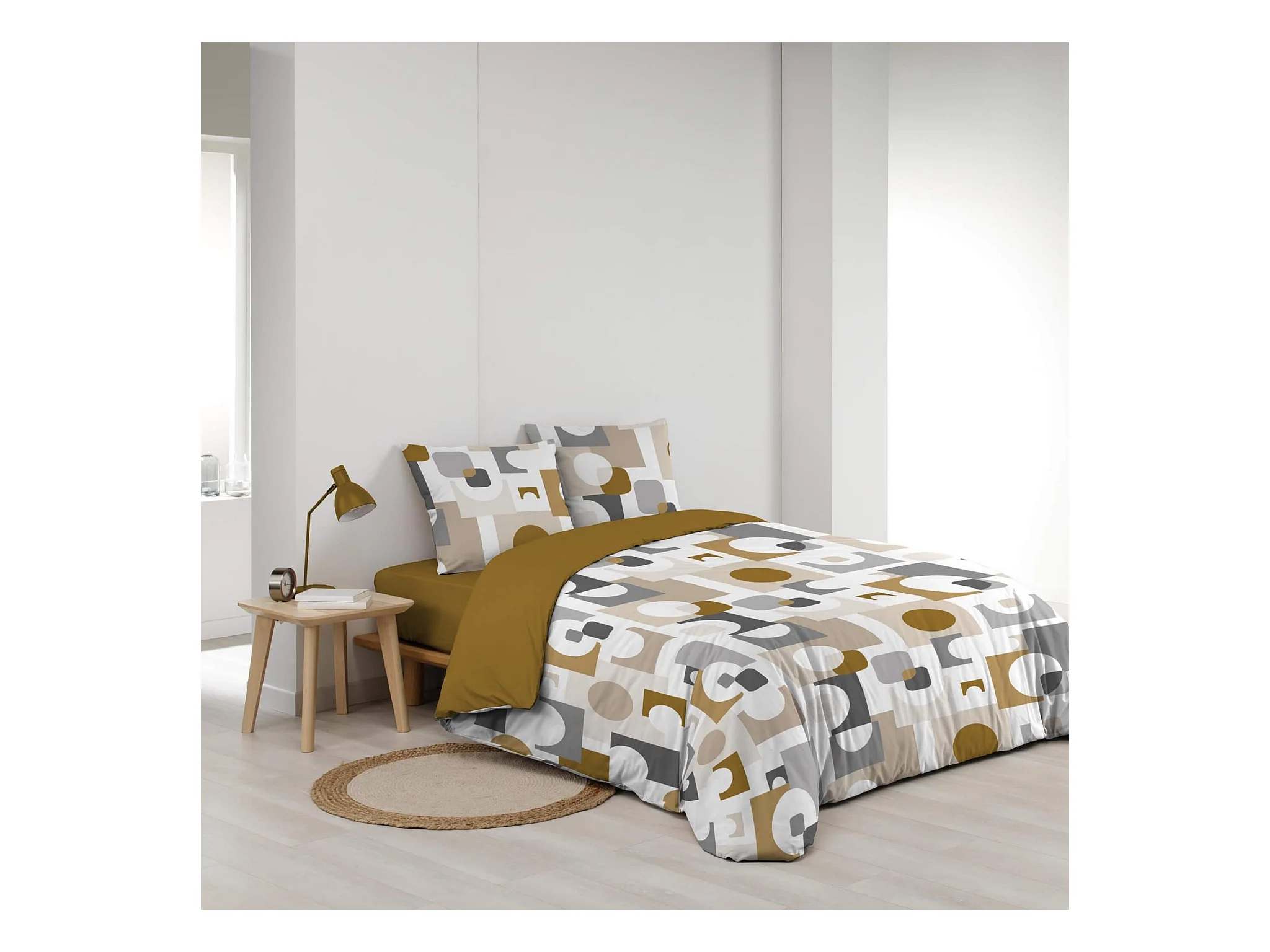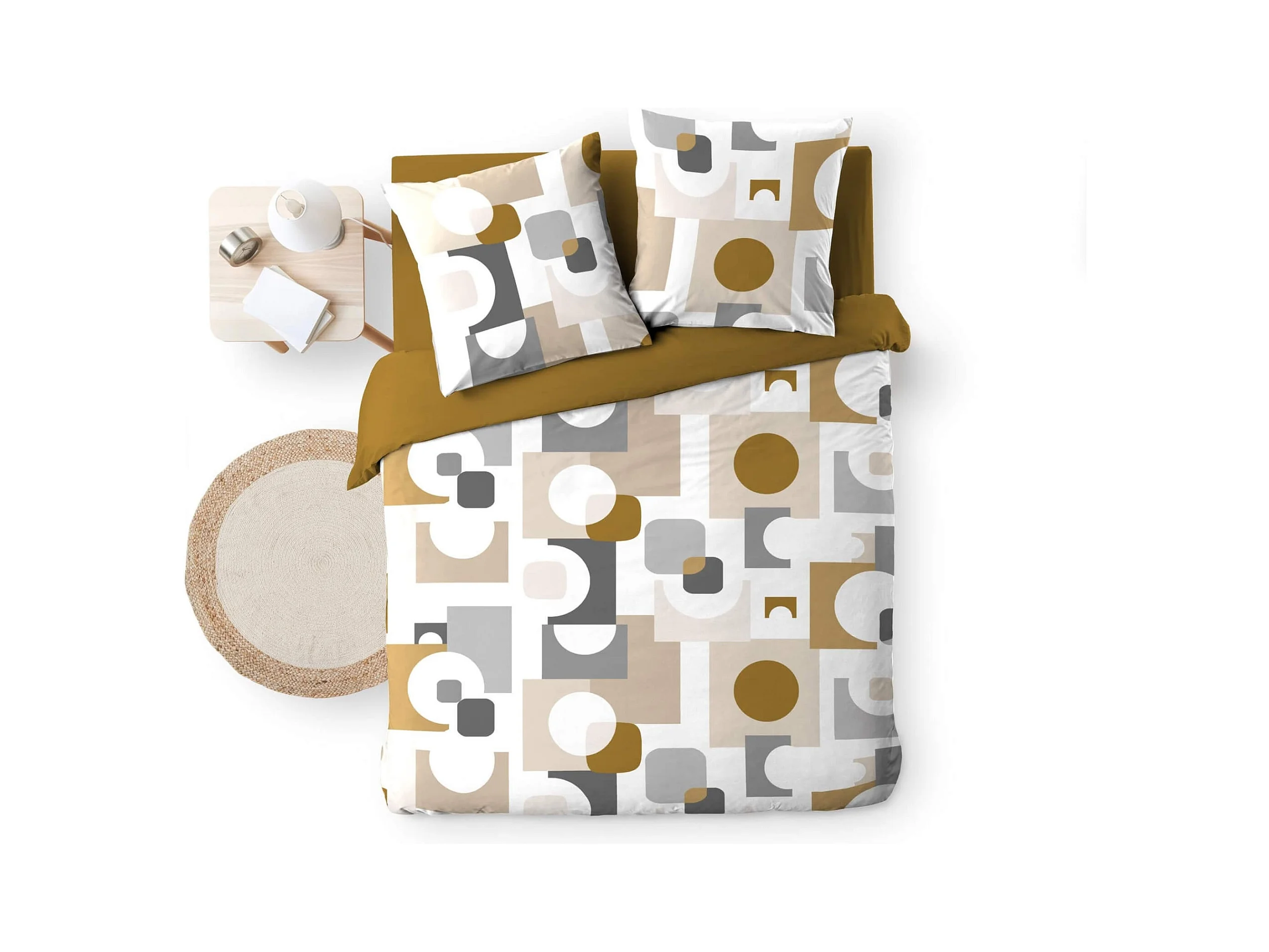 Parure de Lit 3 Pièces "Geomelo" 240x220cm Ocre