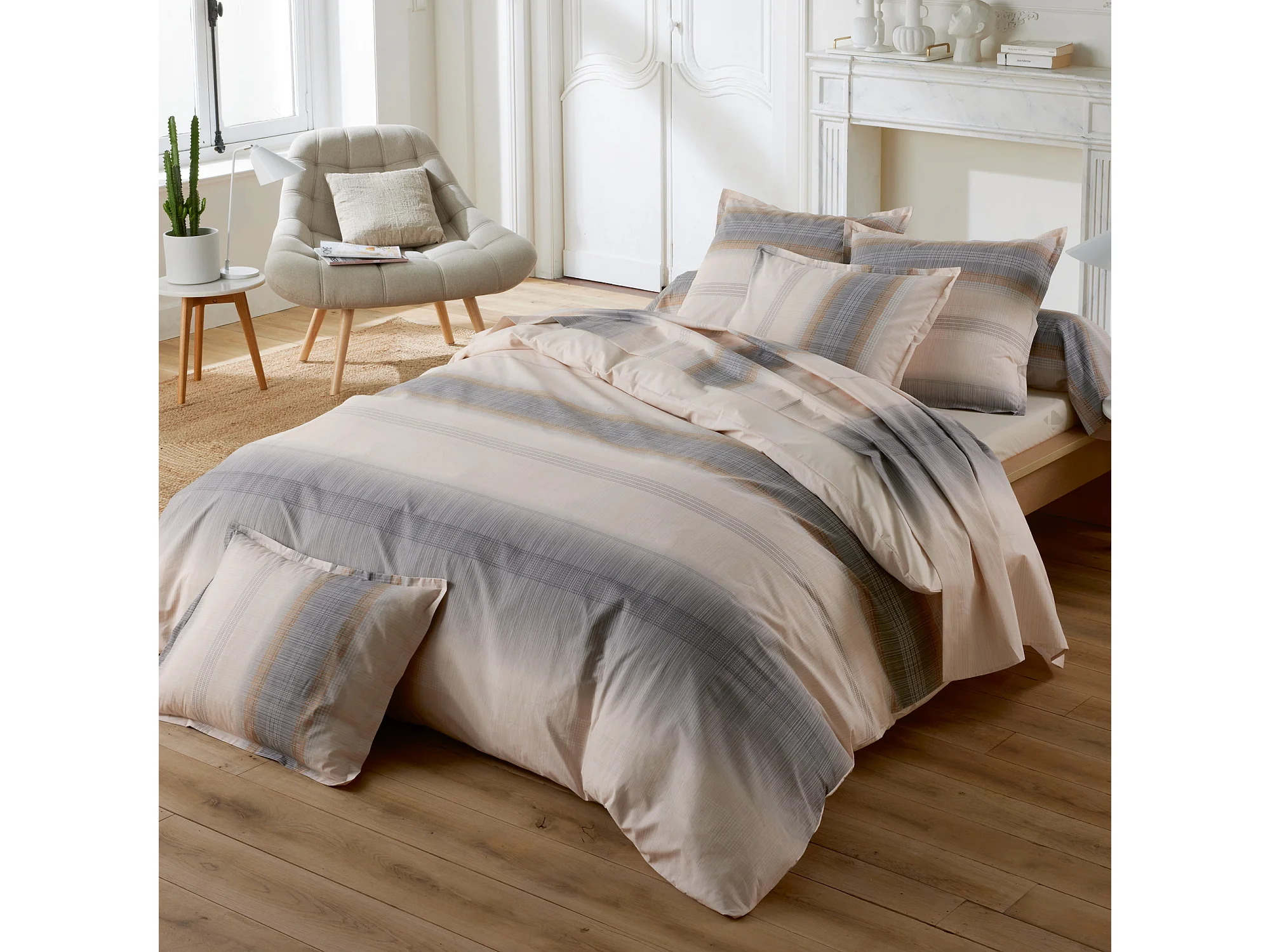 Parure de lit 300x240 cm 65x65 cm percale ESTEBAN beige 3 pièces