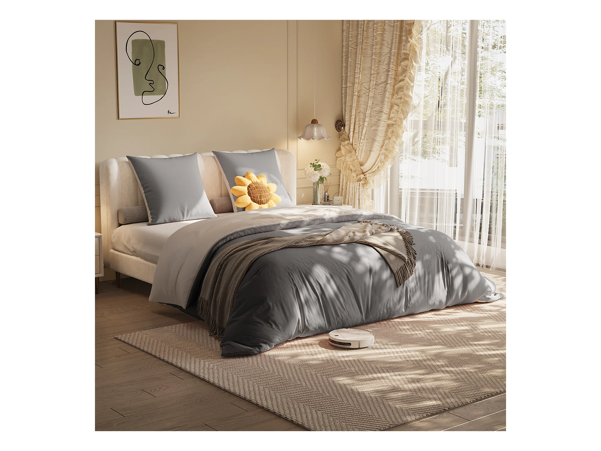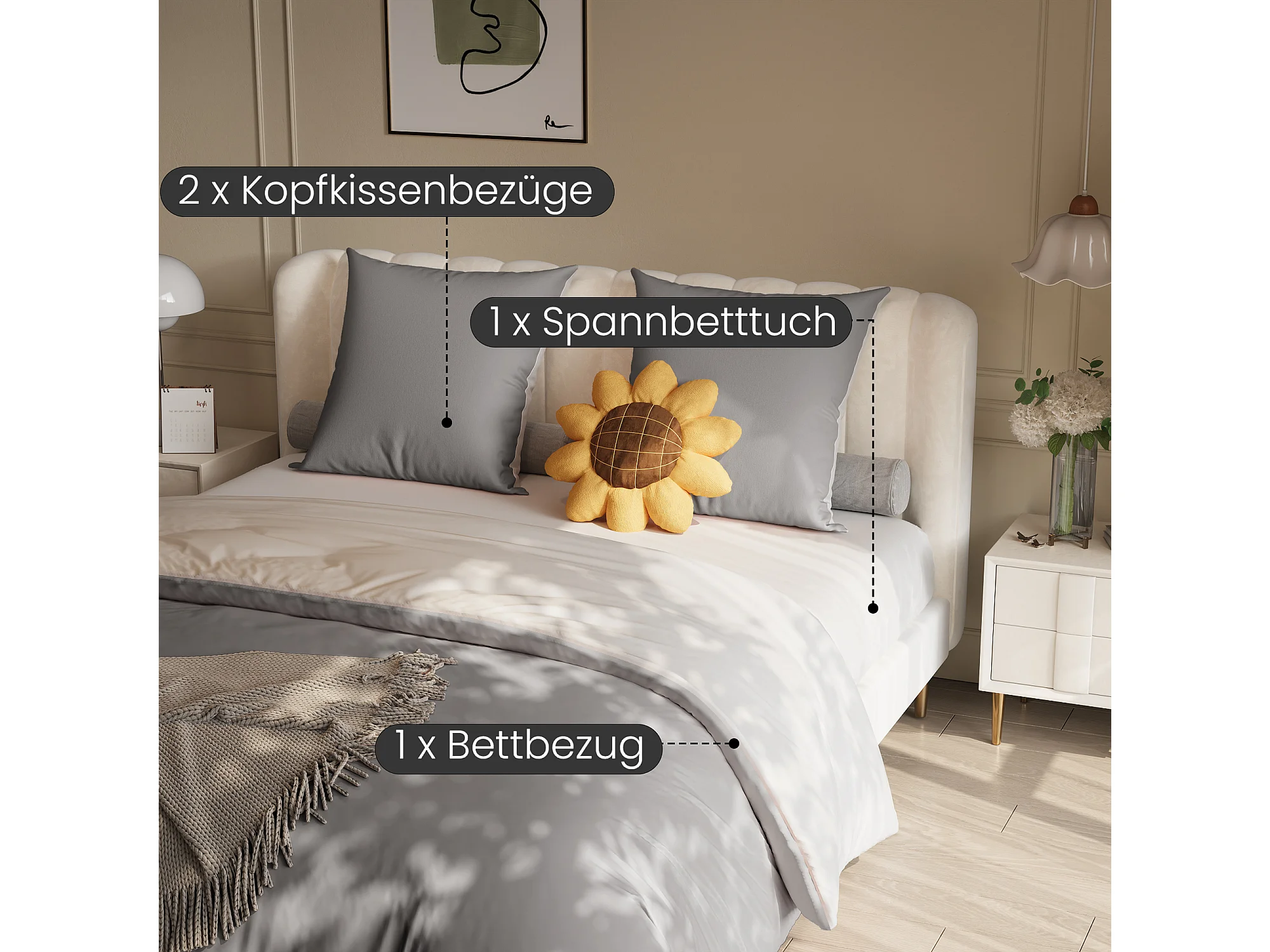 Parure de lit - 1 housse de couette 140 x 200 cm + 1 taie d'oreiller 63 x 63 cm - Gris clair