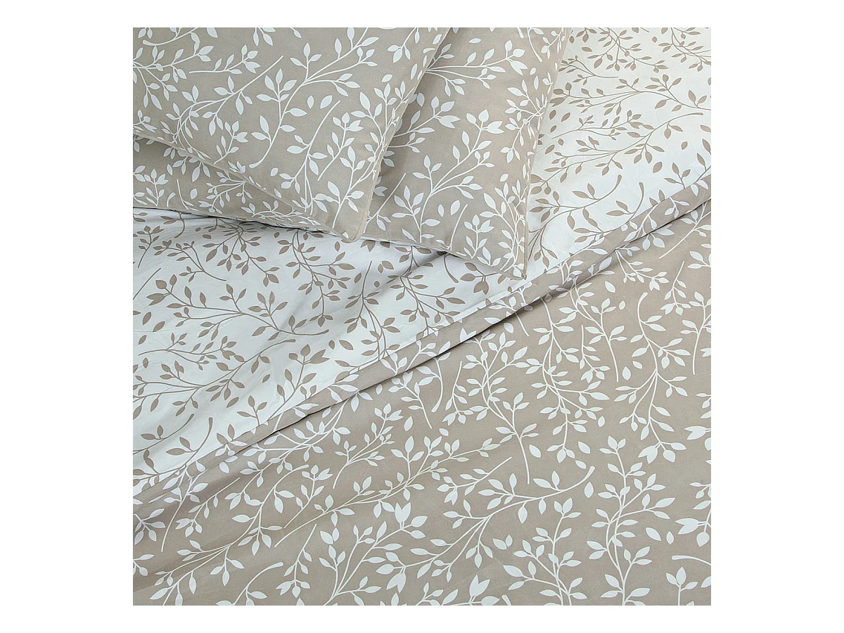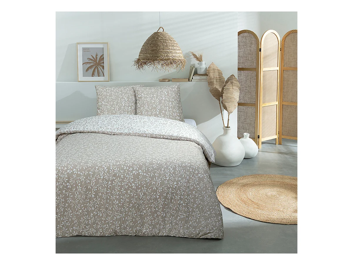 Parure de lit 2 personnes en coton 57 fils imprimé beige 260x240cm