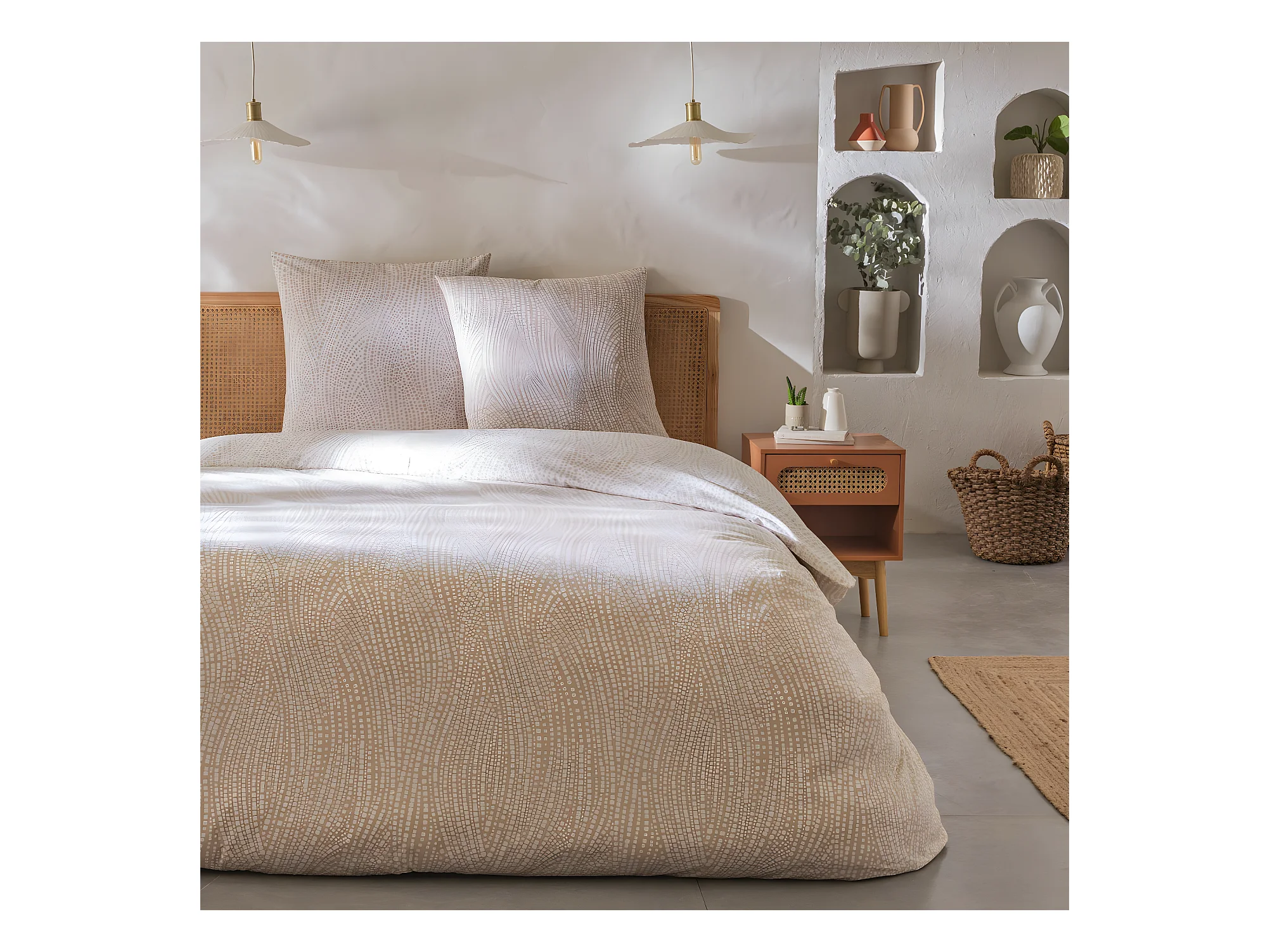 Parure de lit 2 personnes en coton 57 fils imprimé beige 240x220cm