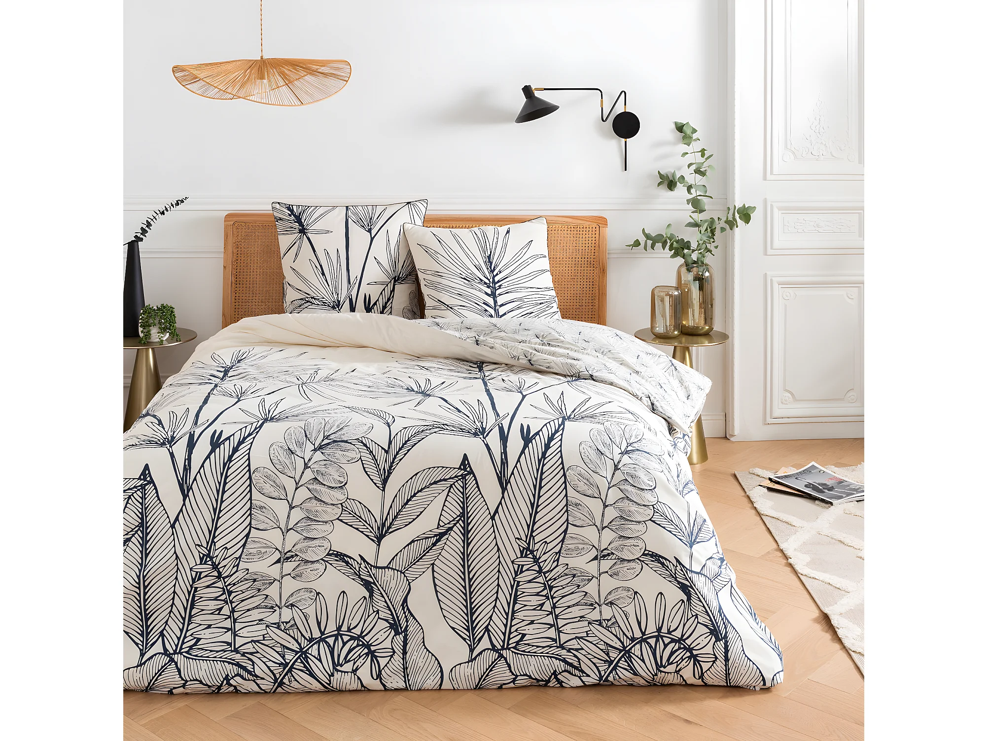 Parure de lit 2 personnes végétal réversible en coton 260x240cm