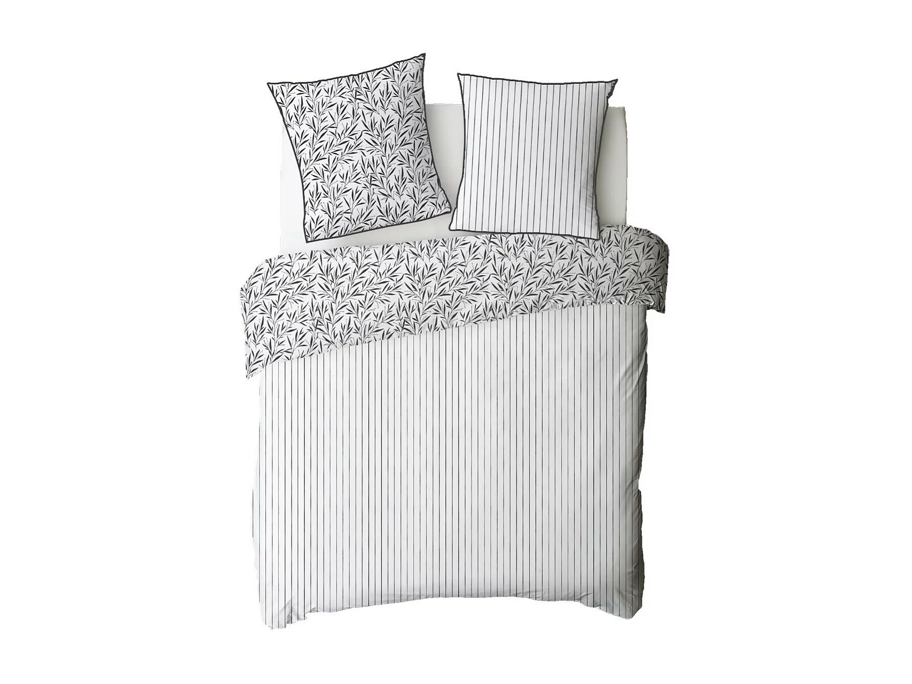 Parure de lit 2 personnes feuillage et rayures en coton 260x240cm