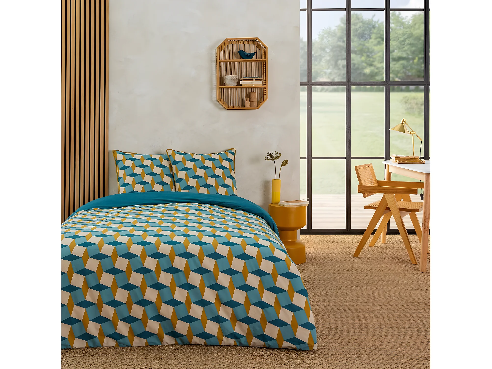 Parure de lit 2 personnes géométrique réversible en coton 240x220cm