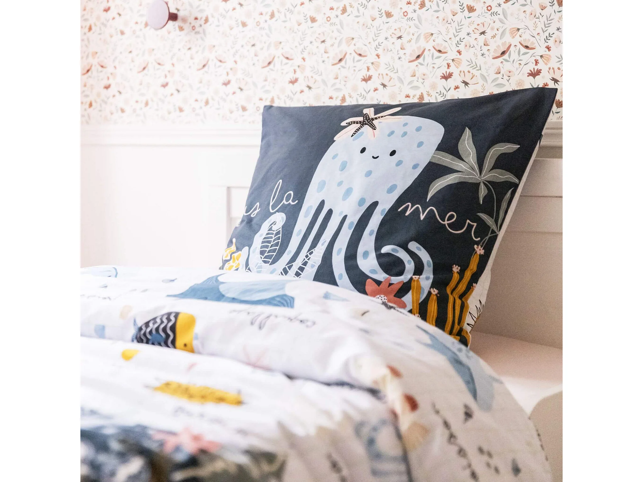 Parure de lit coton imprimé marin 140x200 cm bleu
