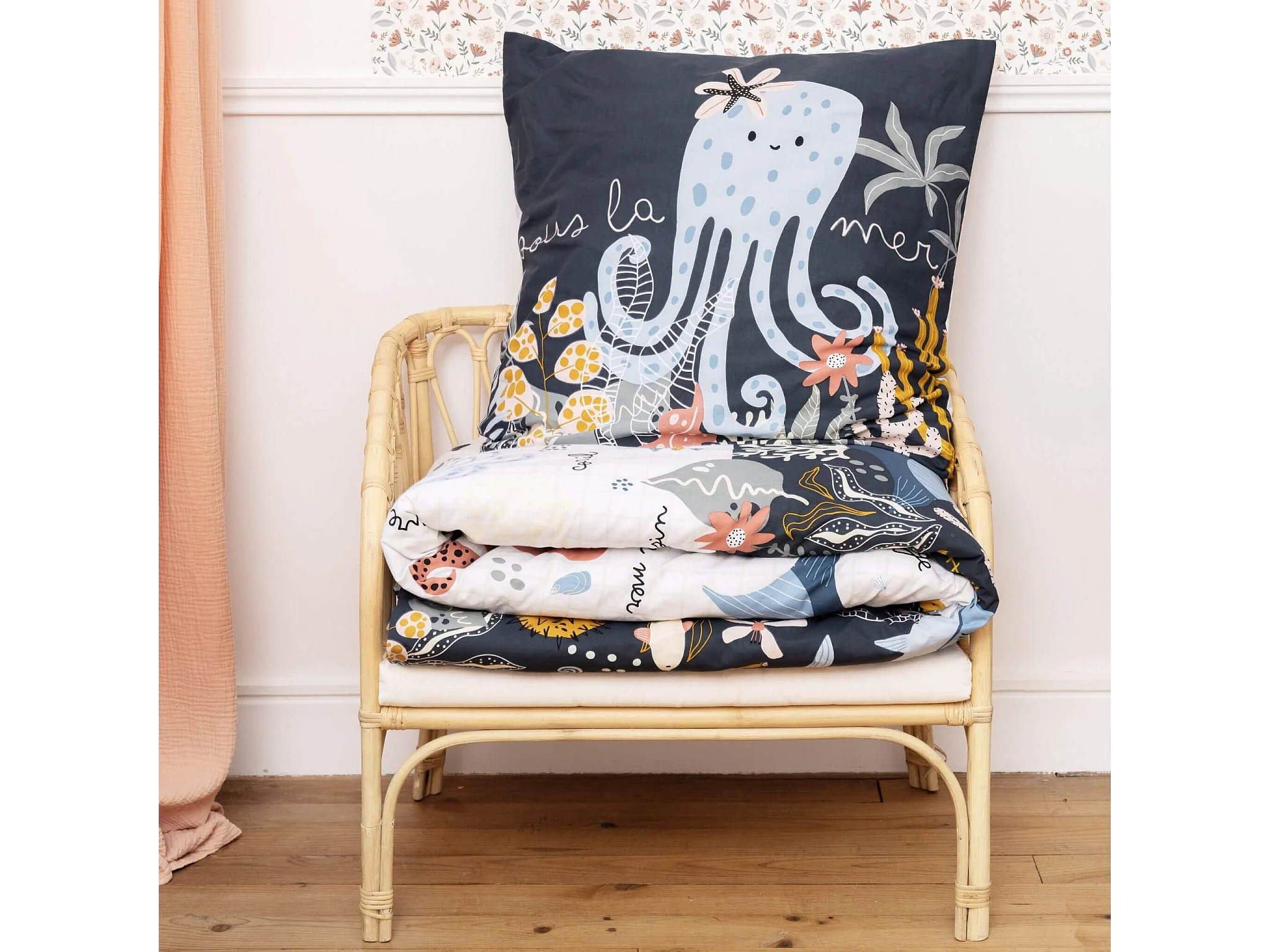 Parure de lit coton imprimé marin 200x200 cm bleu