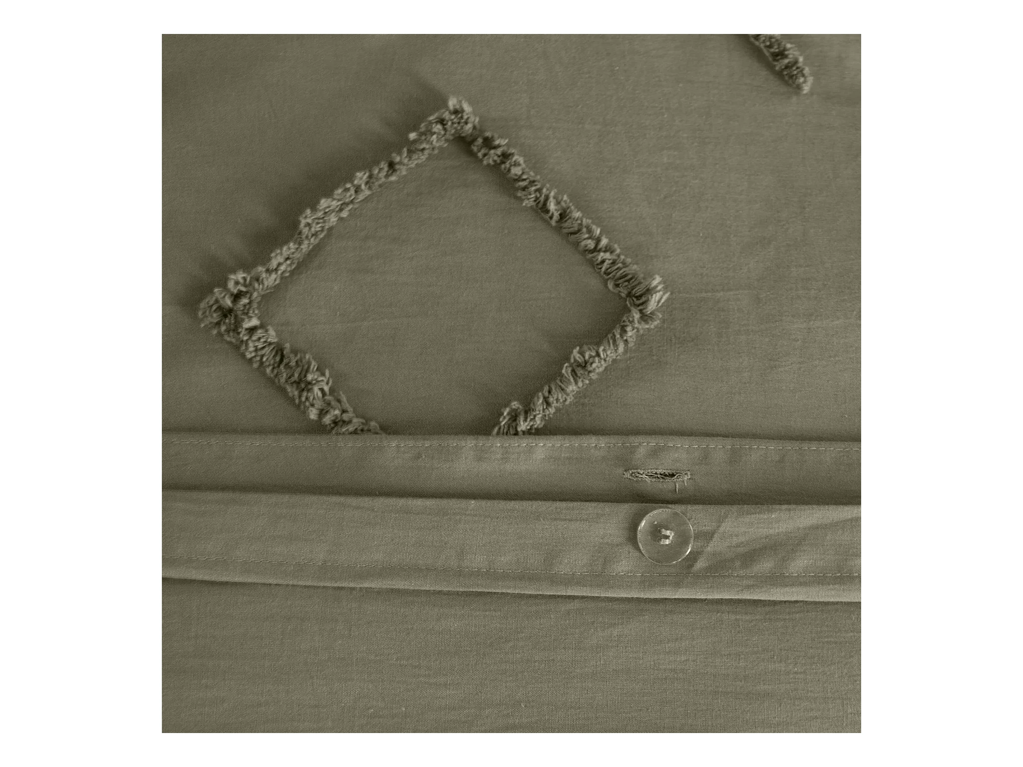 Parure de lit coton lavé tufté motifs ethniques 2 places vert. 1 housse 240x220cm + 2 taies 63x63cm
