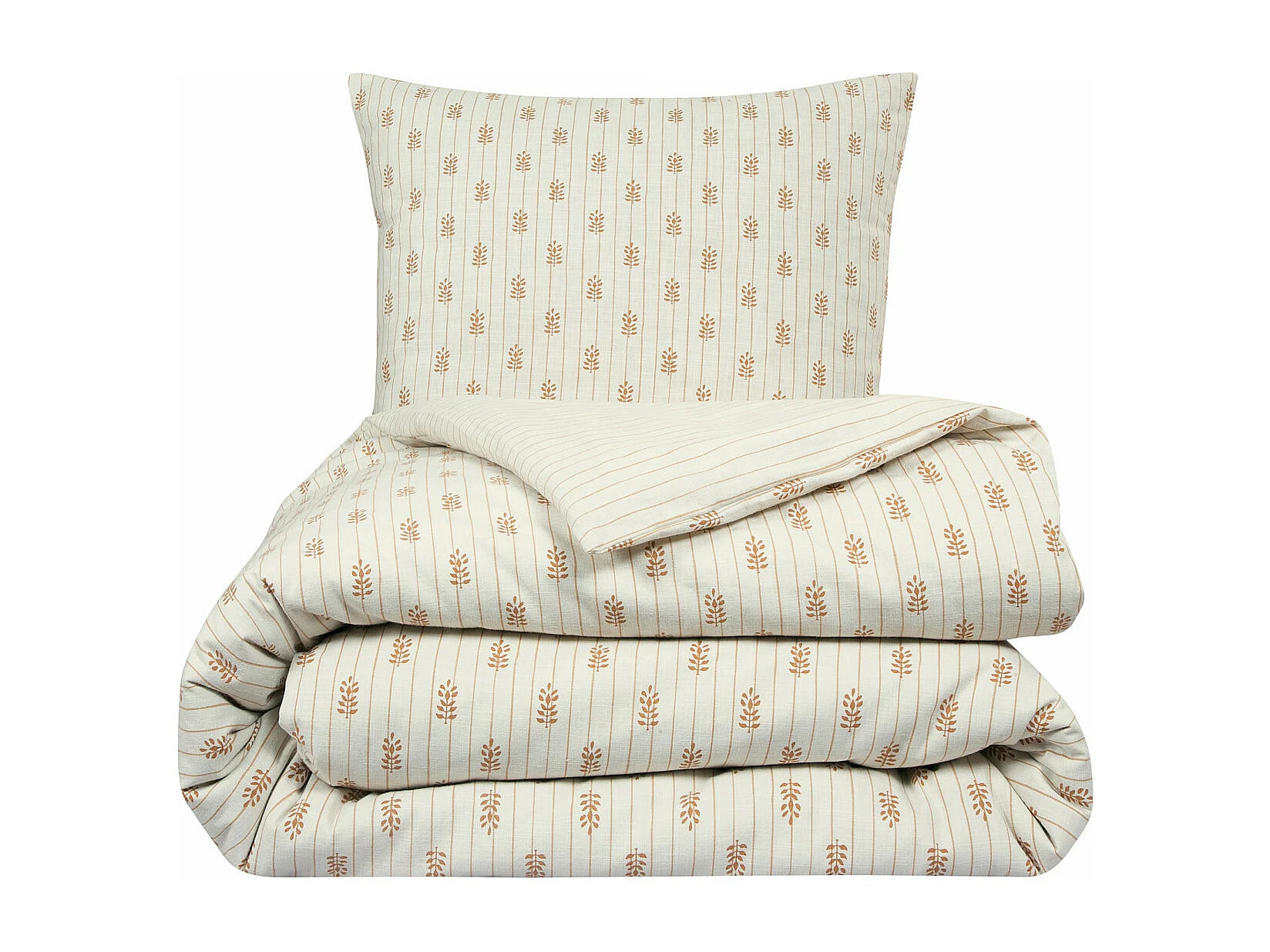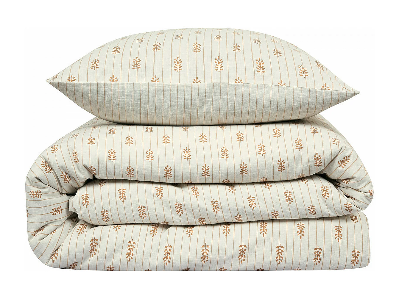 Parure de lit double à rayures fleurie effet lin 240x220cm