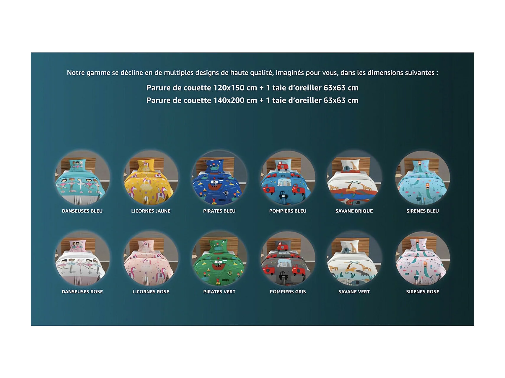 Parure de Lit 2 Pièces "Licorne" 140x200cm Rose