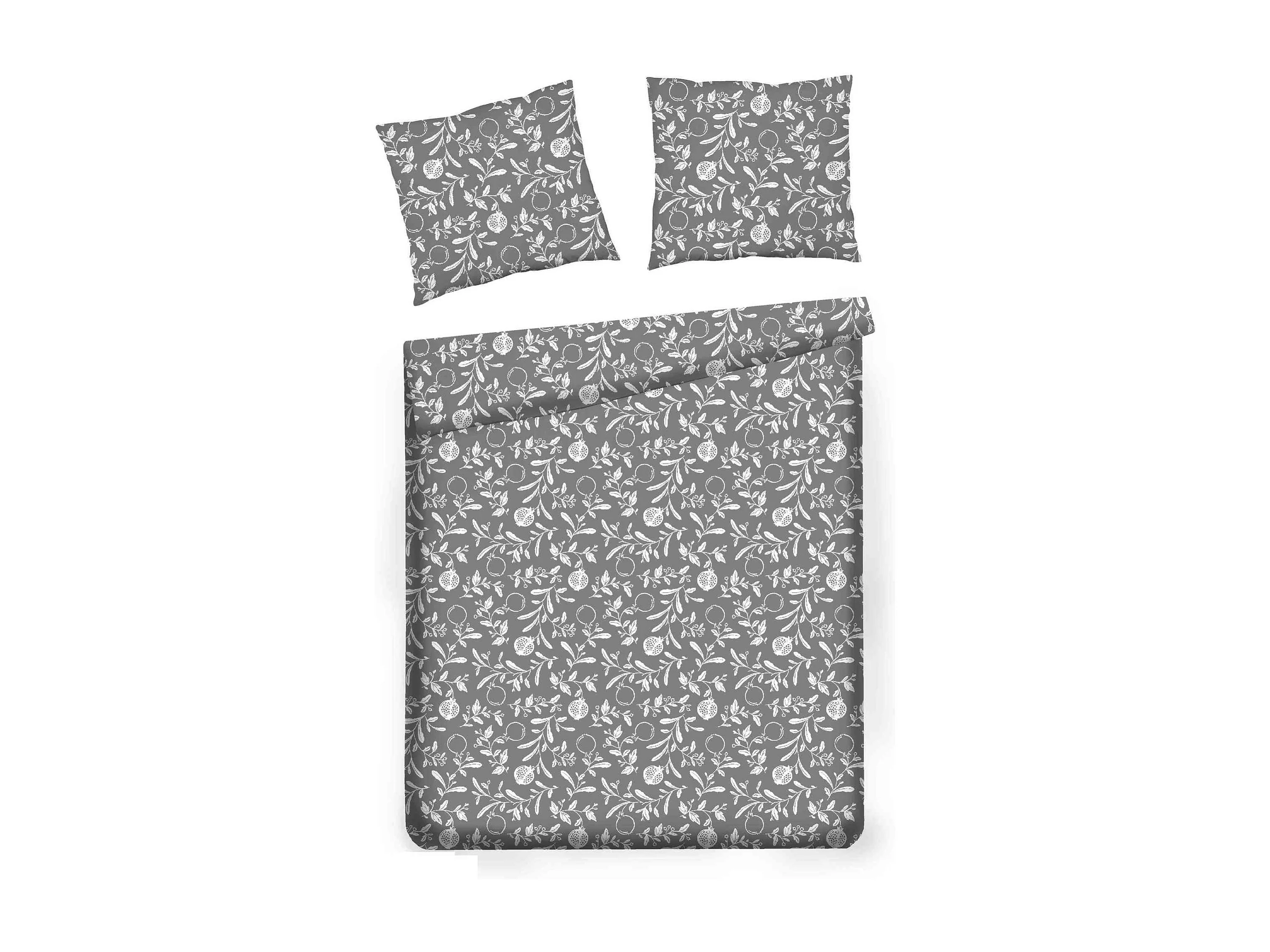Parure de lit en coton a imprime feuilles Gris