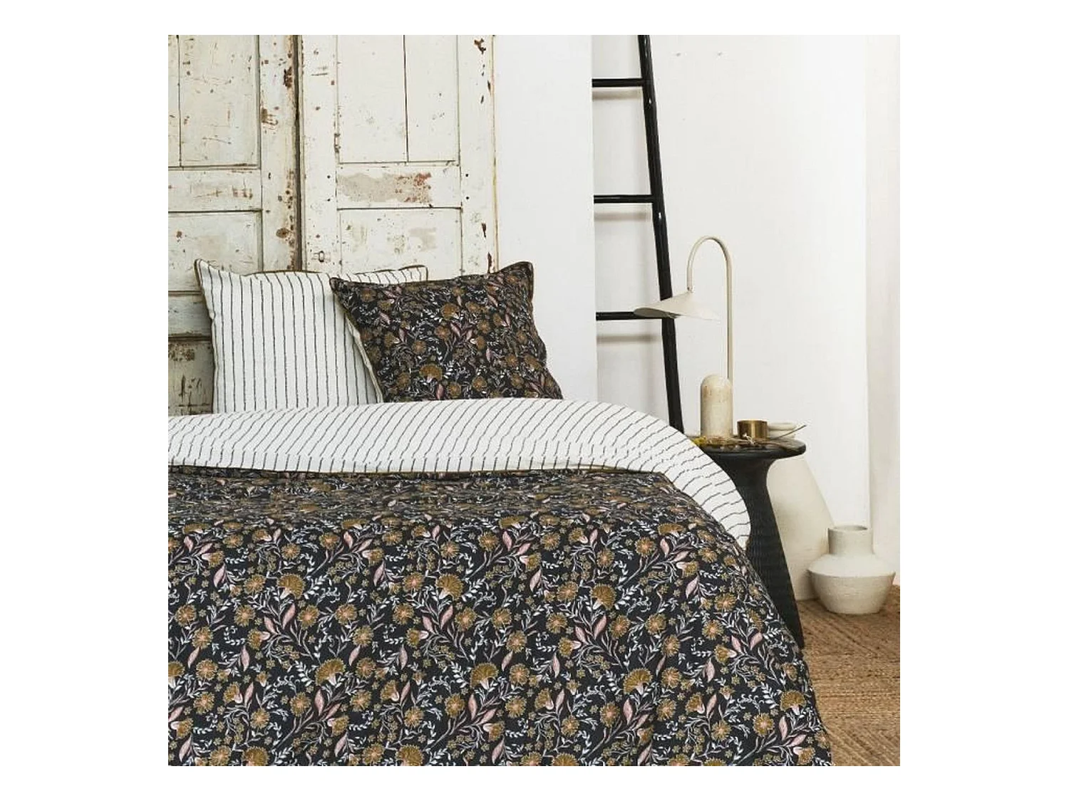 Parure de lit coton imprimé floral 240 x 220 cm