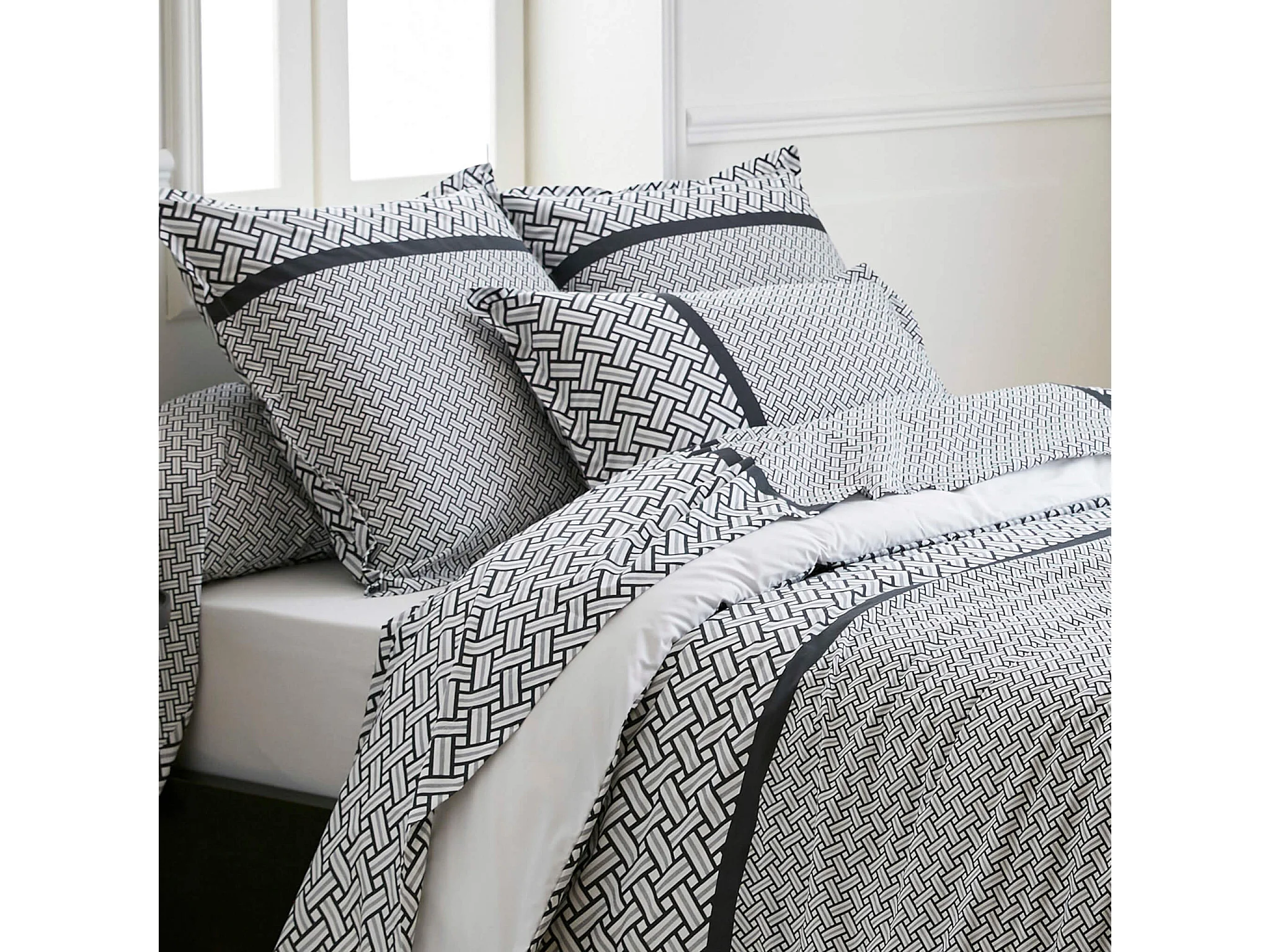 Parure de lit percale Riviera réglisse 260x240 cm - Tradilinge