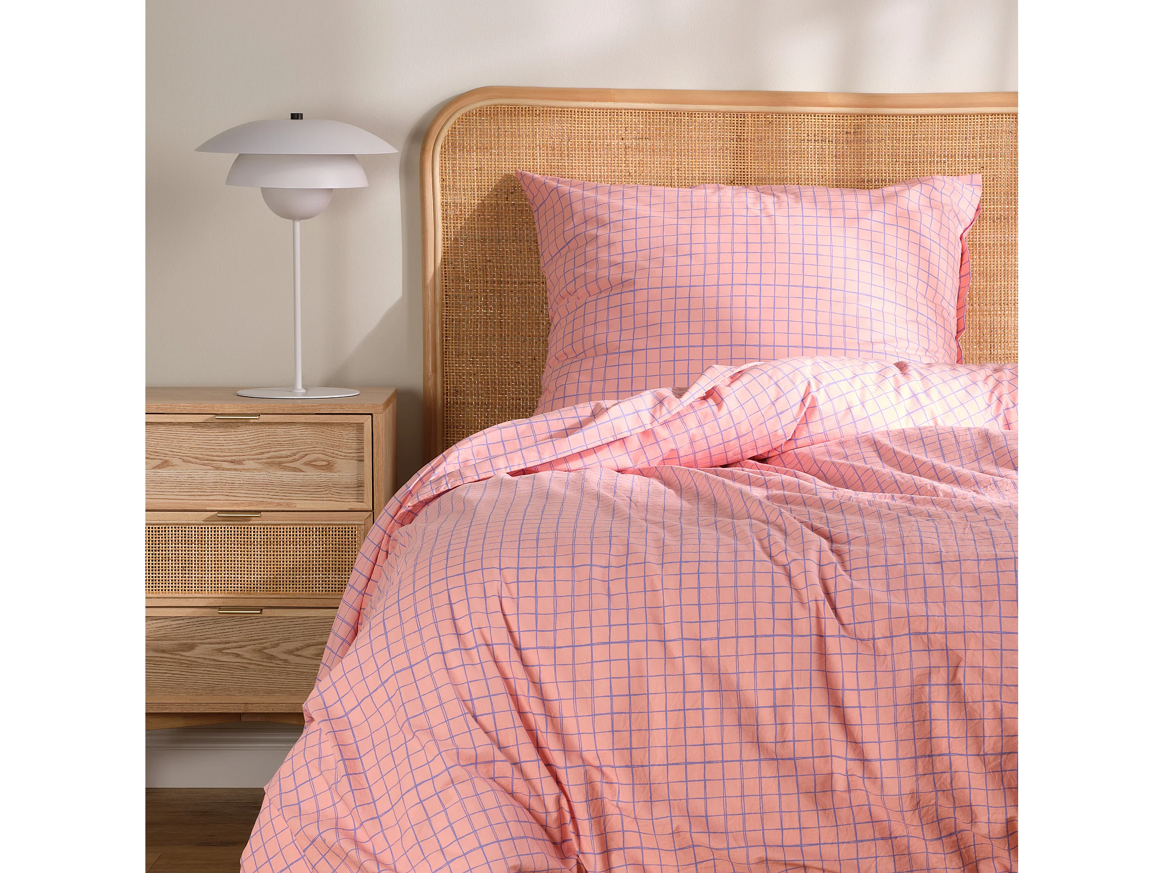 Parure de lit 4 pièces en Polyester, 140 x 200 cm, motif à carreaux esthétique en coton, résistante aux Plis et à la décoloration - Rose