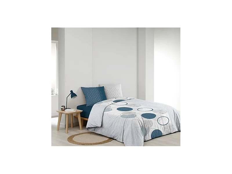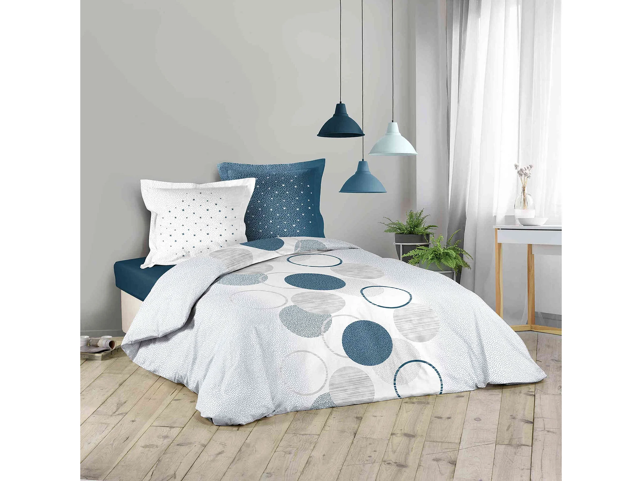 Parure de lit satin de coton Tiago bleu 240x220 - Tradilinge