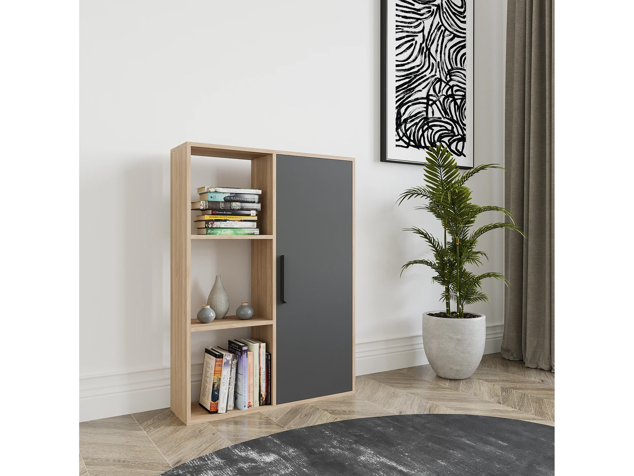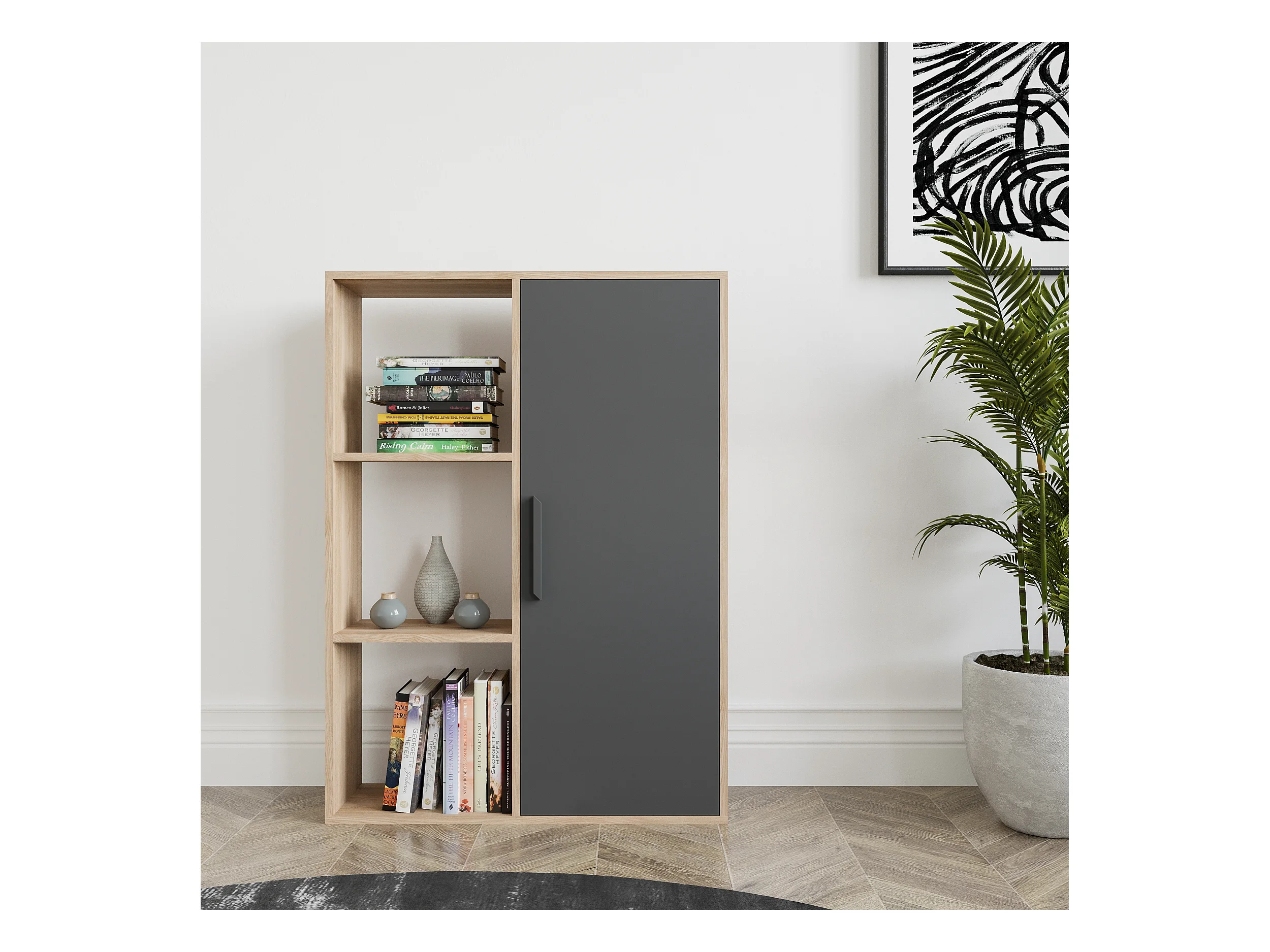 Patrick Bibliothèque 3 Etagères Ouverte et Armoire | Design Minimalist (Chêne et Anthracite)