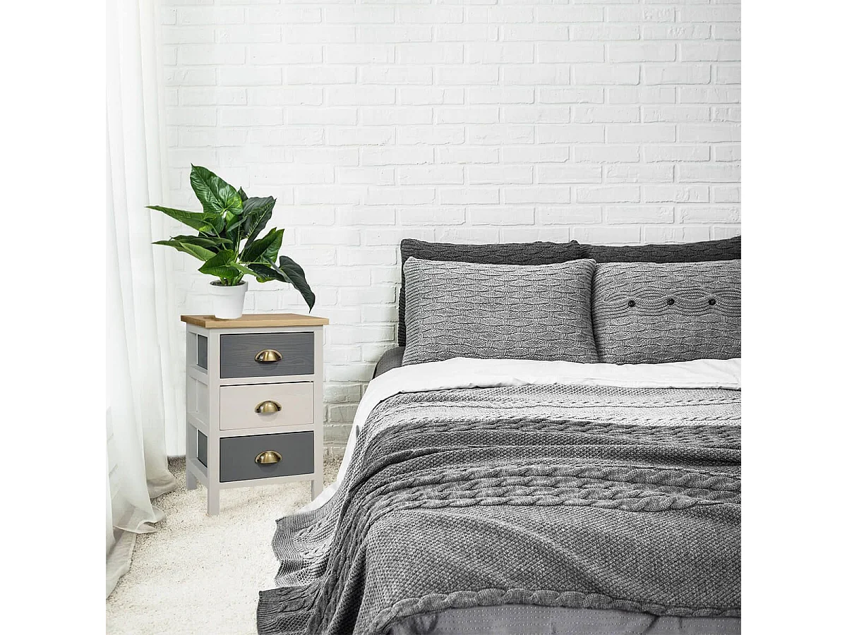 PATTY - Meuble de Rangement 3 Tiroirs en Pin Teinté Gris et Blanc Plateau Naturel