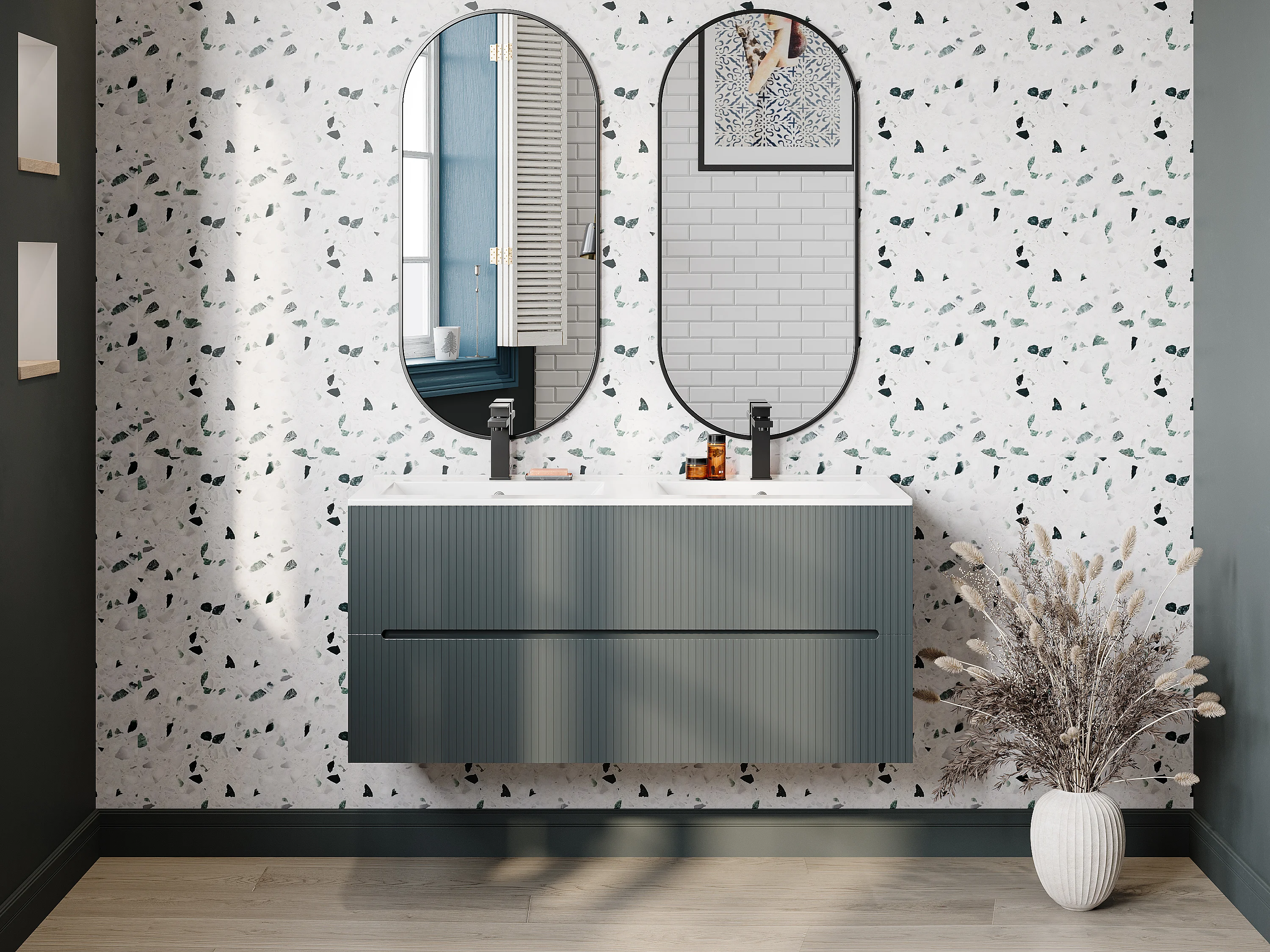 Meuble de salle de bain suspendu avec vasque à encastrer - Strié gris - 120 cm - PAVANI