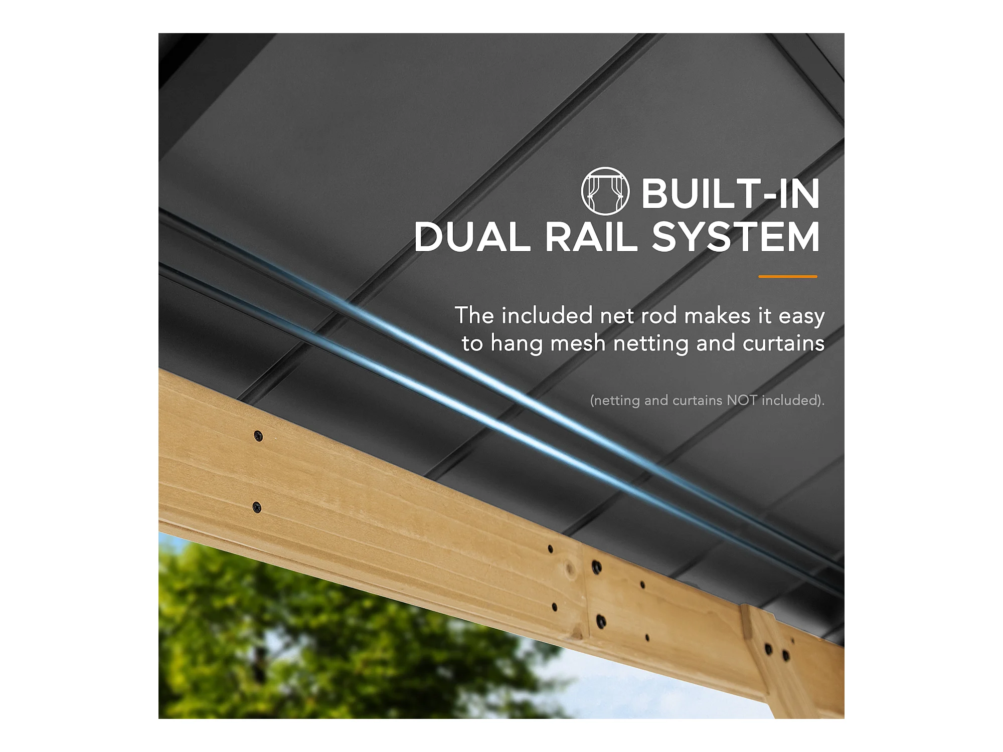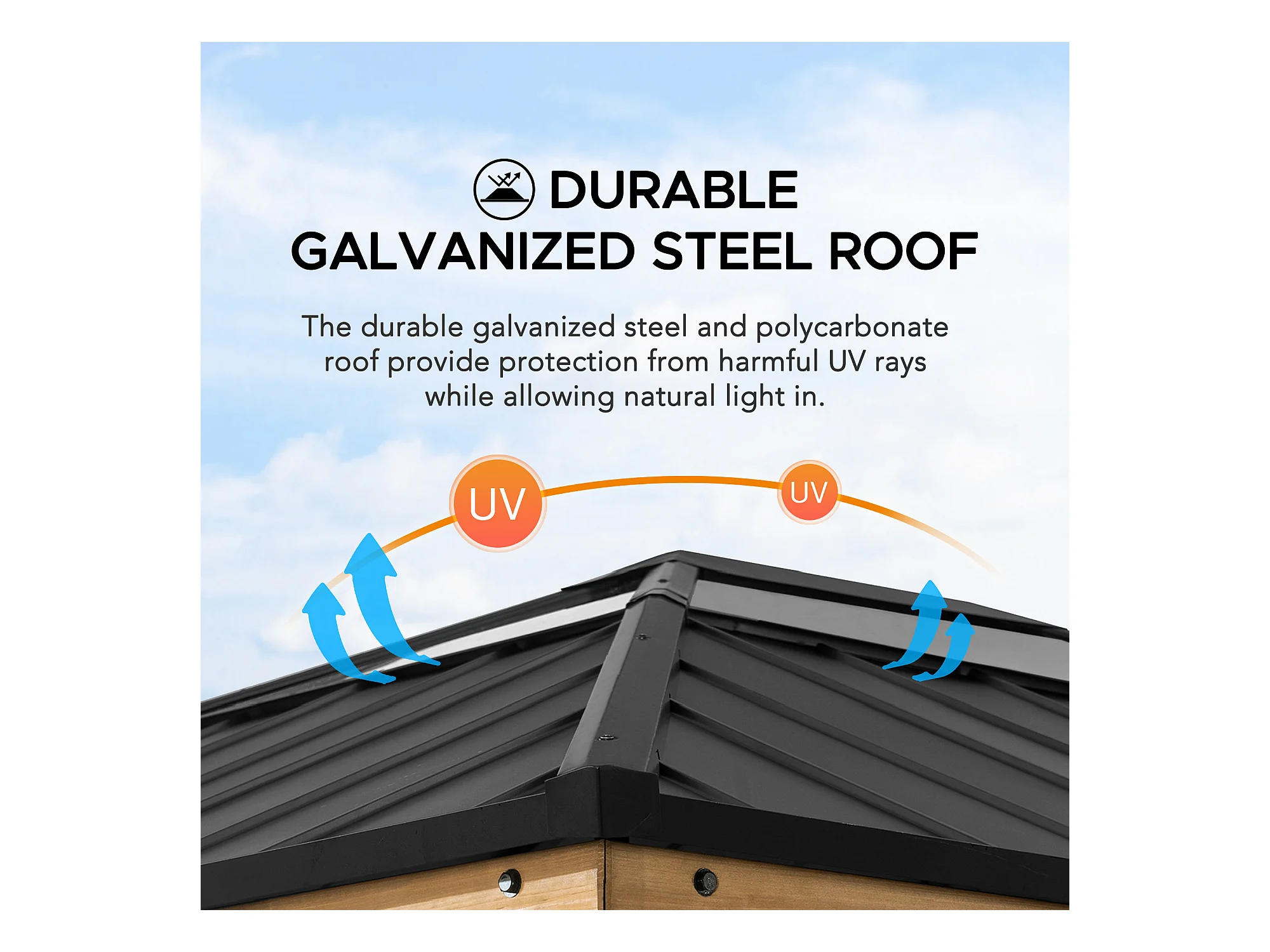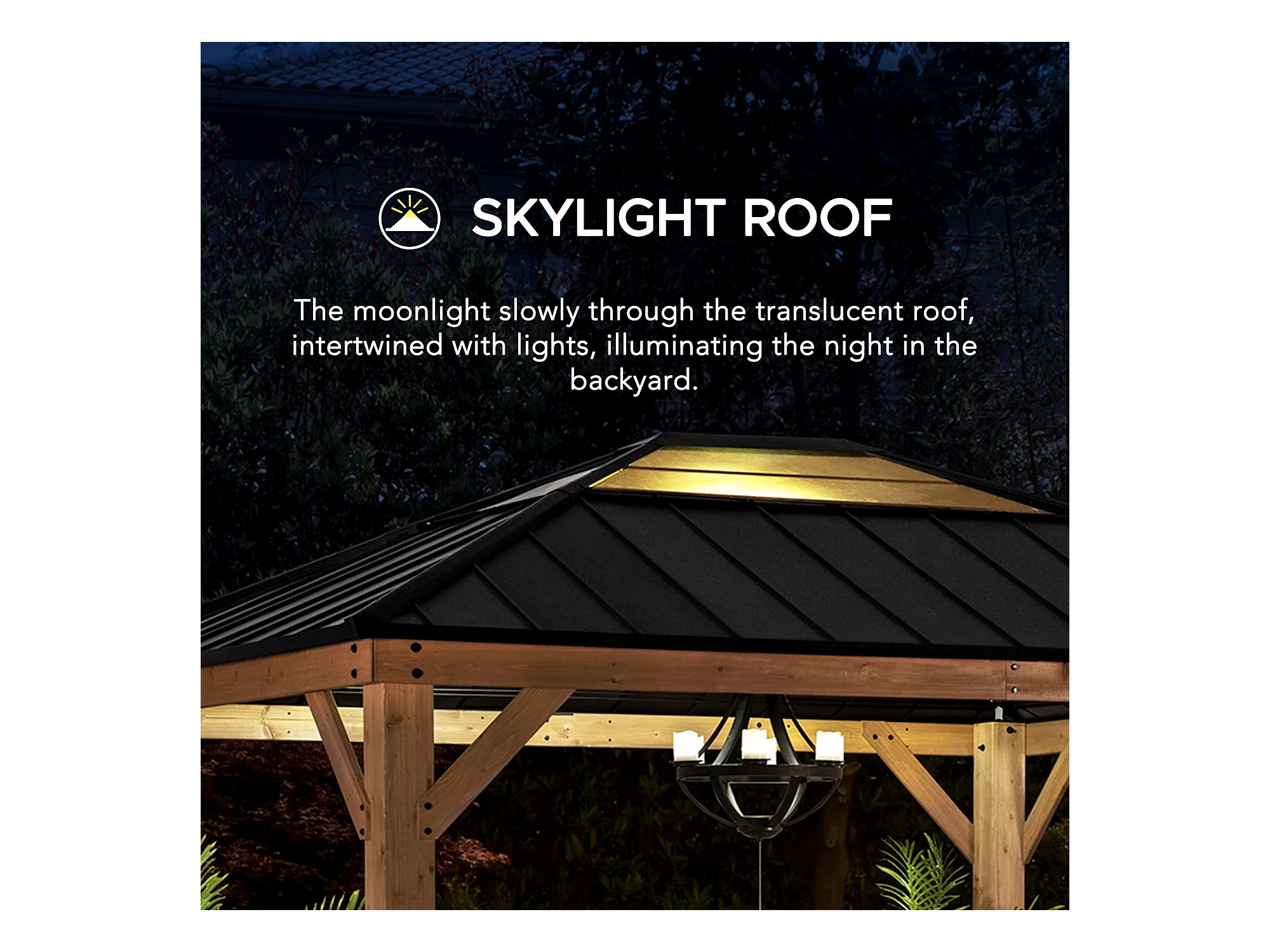 Pavillon en bois avec cadre en acier anthracite et lucarne en polycarbonate BRURI 335cm x 393cm