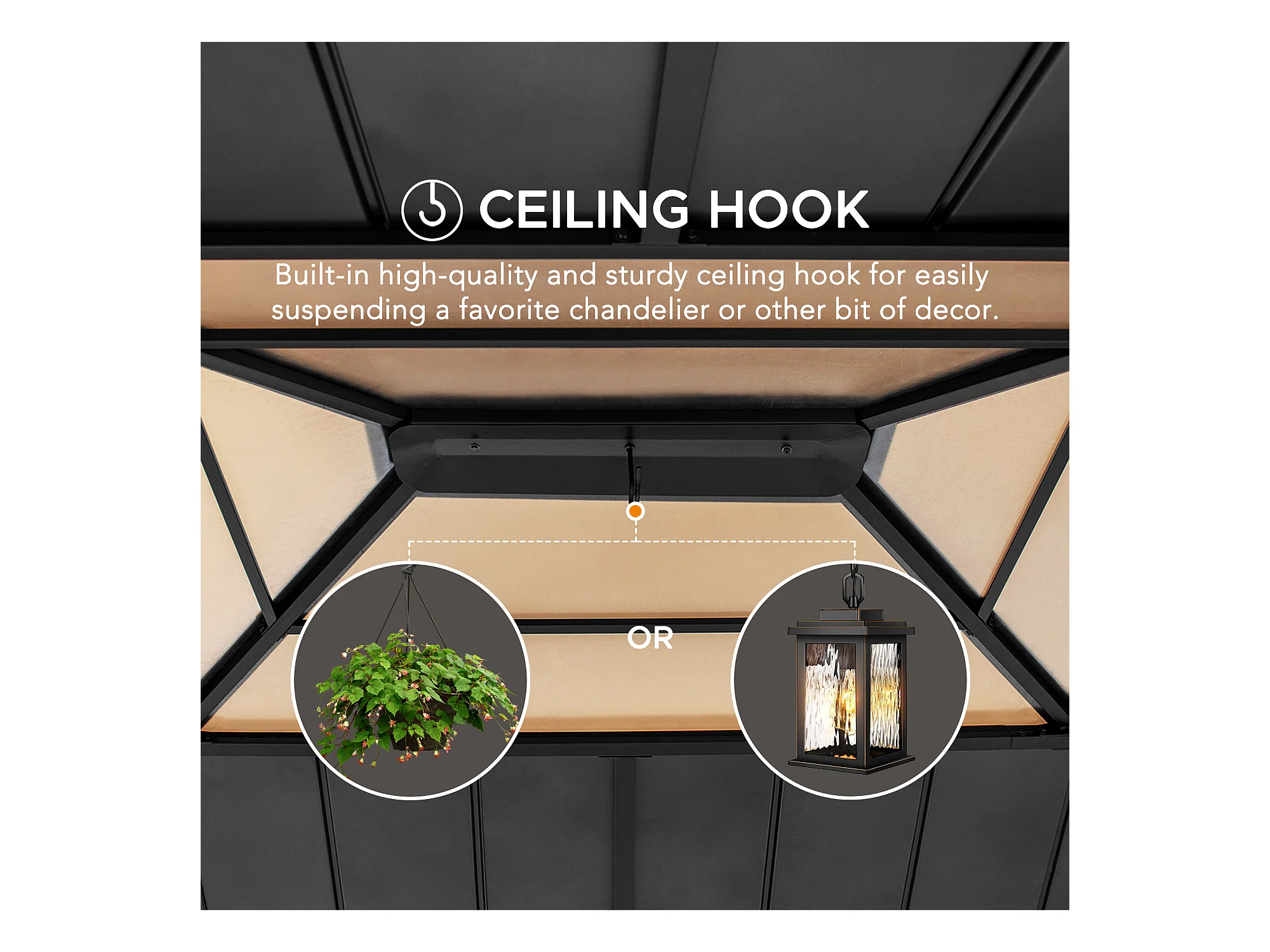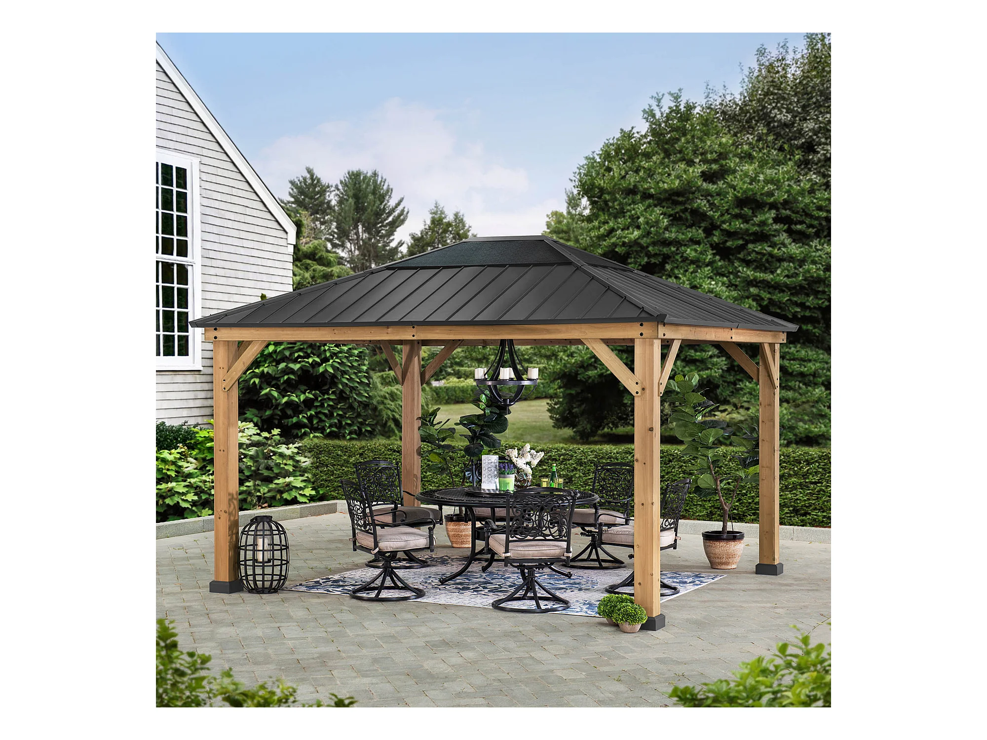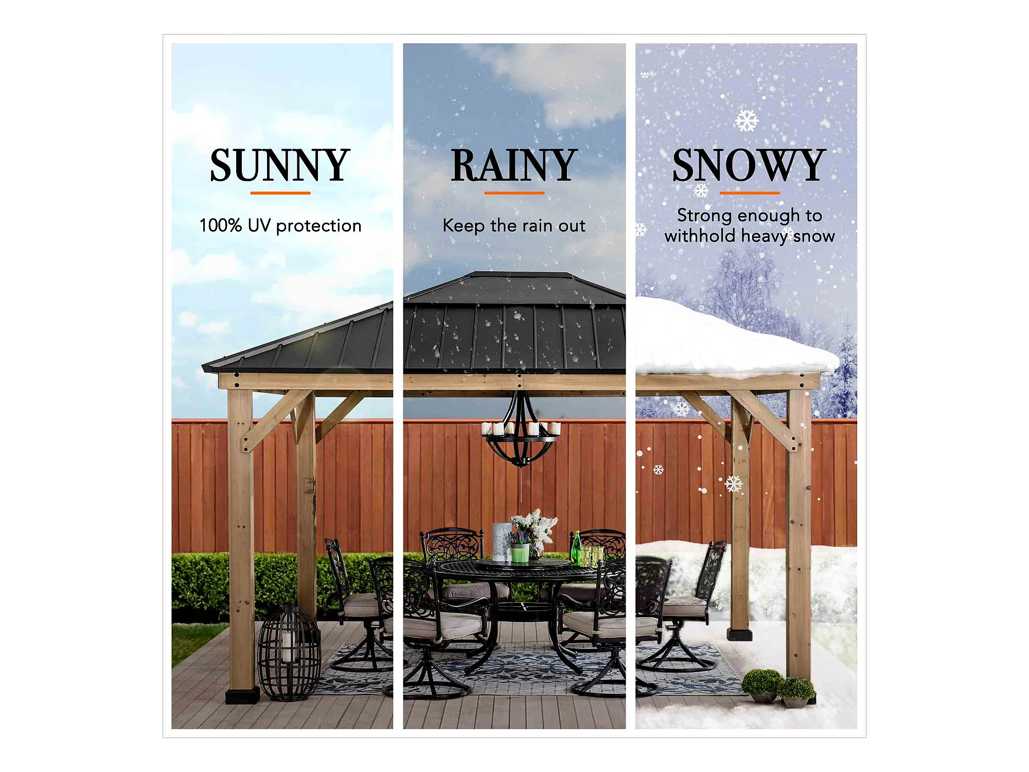 Pavillon en bois avec cadre en acier anthracite et lucarne en polycarbonate BRURI 335cm x 393cm