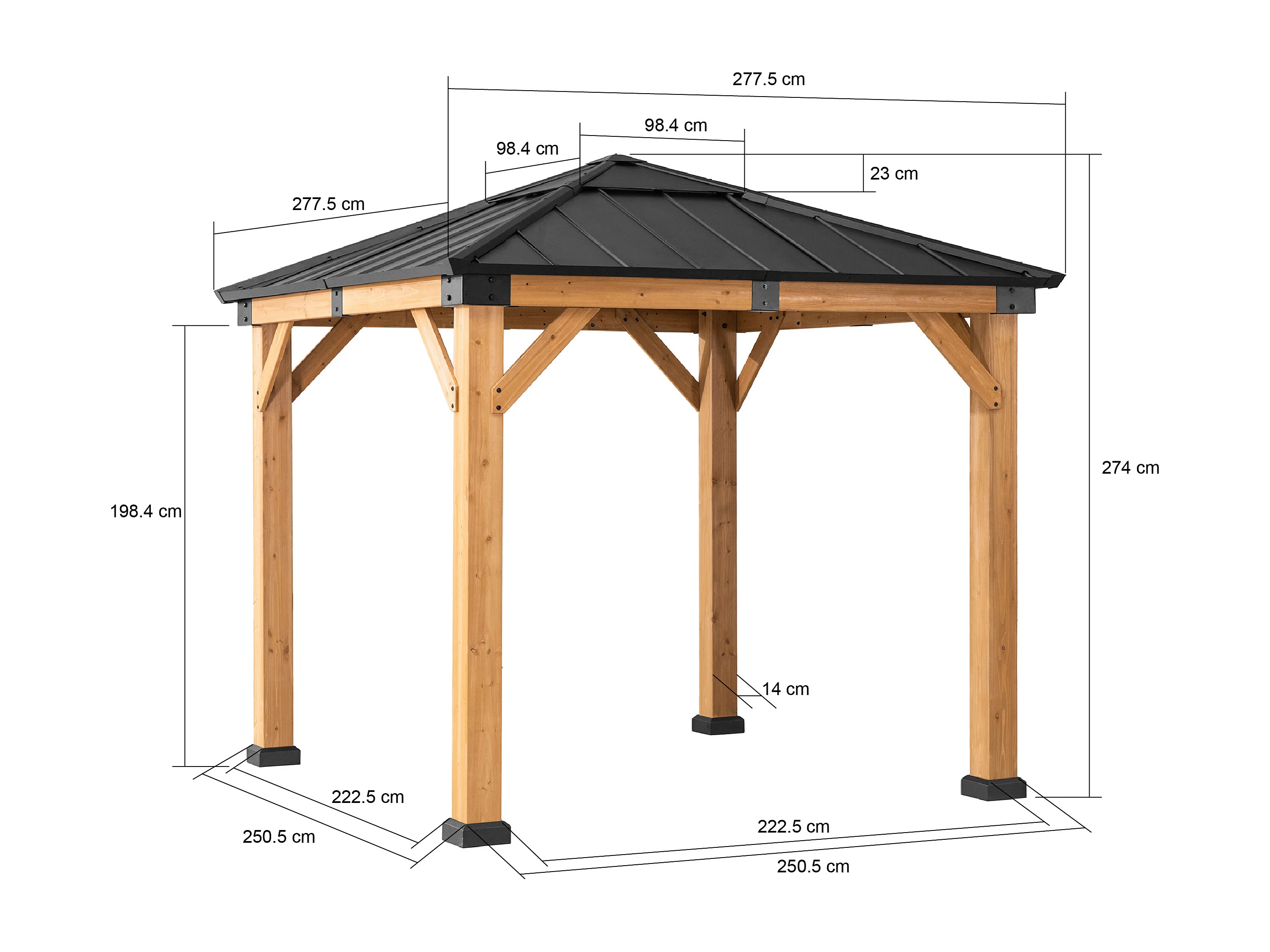 Pavillon en bois avec cadre en acier anthracite et lucarne en polycarbonate RAPI 273cm x 273cm