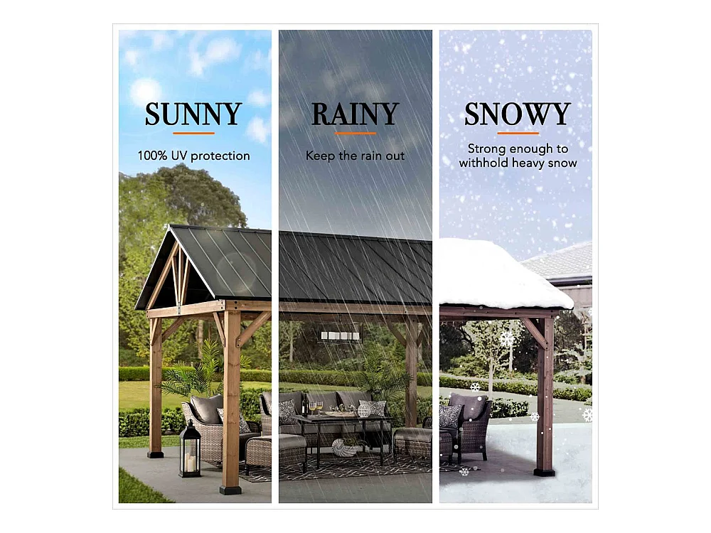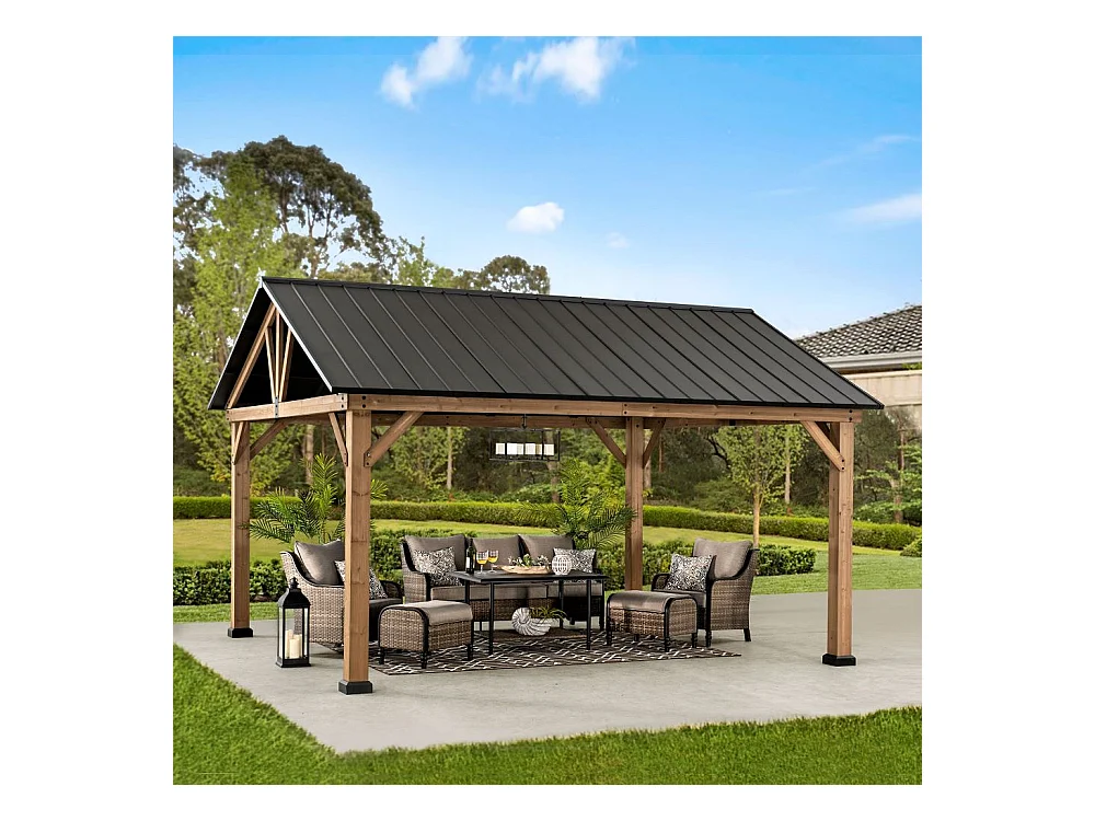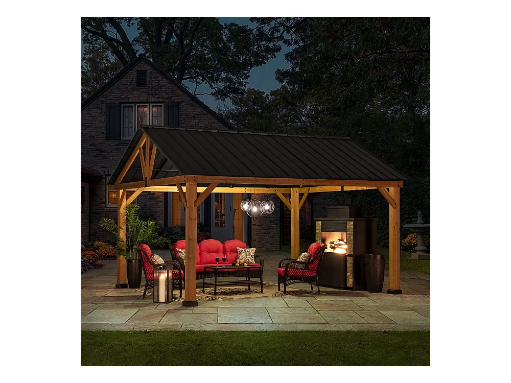 Pavillon Gazebo à pignon en bois avec crochet de plafond REBRA 465 cm x 404 cm