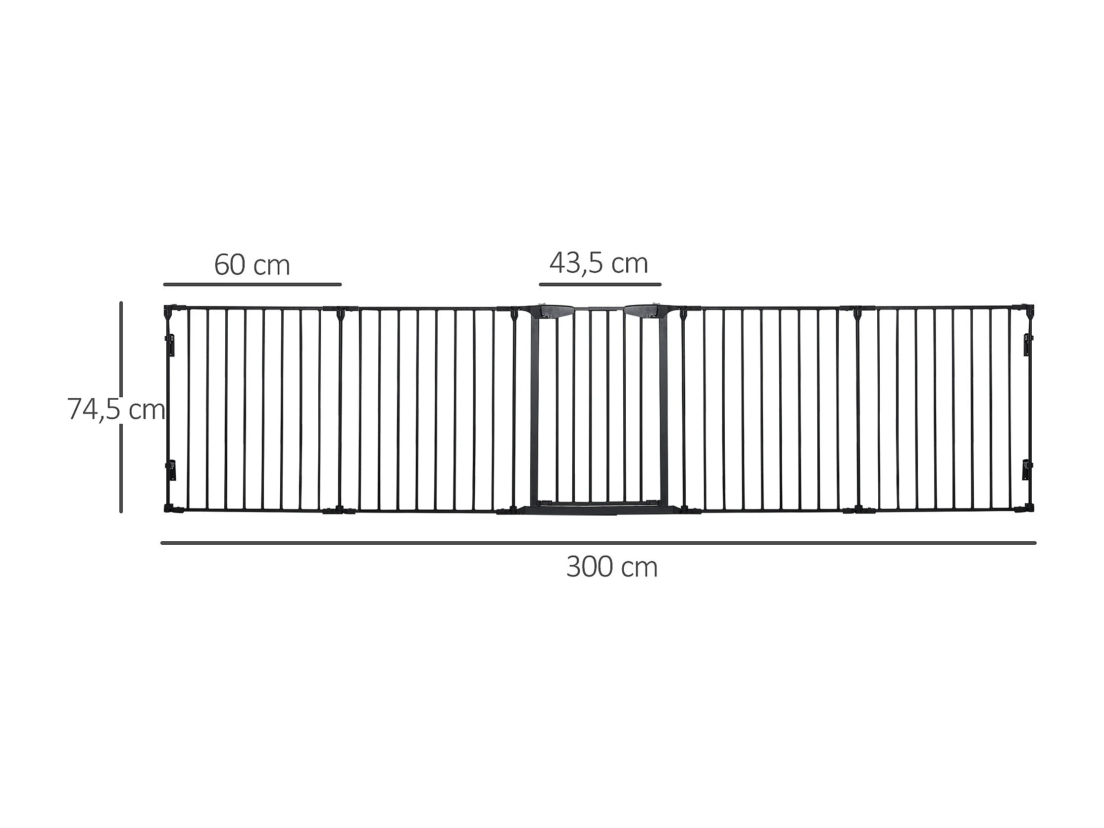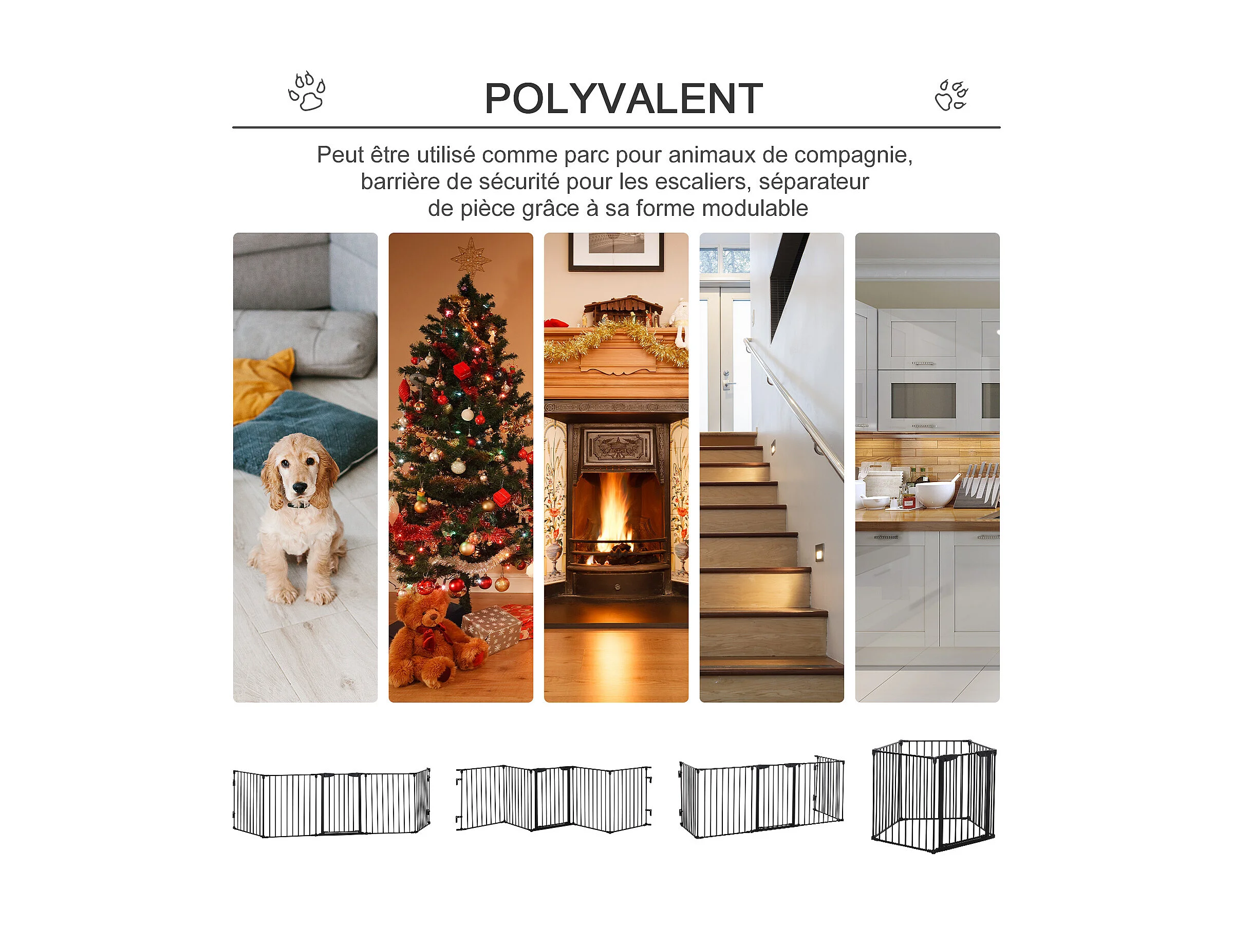 Barrière de sécurité parc enclos chien modulable pliable porte verrouillable intégrée 5 panneaux en métal 300L max. x 74,5H cm métal PP noir