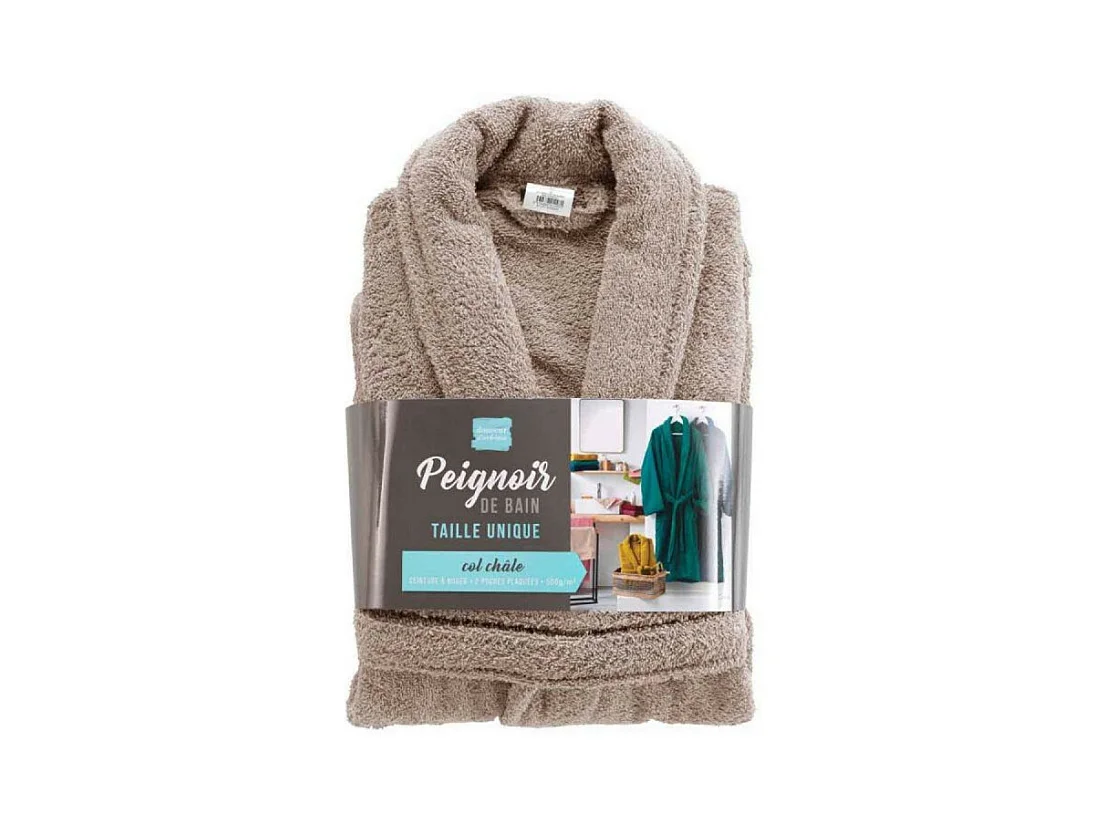 Peignoir Col Châle en Coton "Tendresse" Taupe